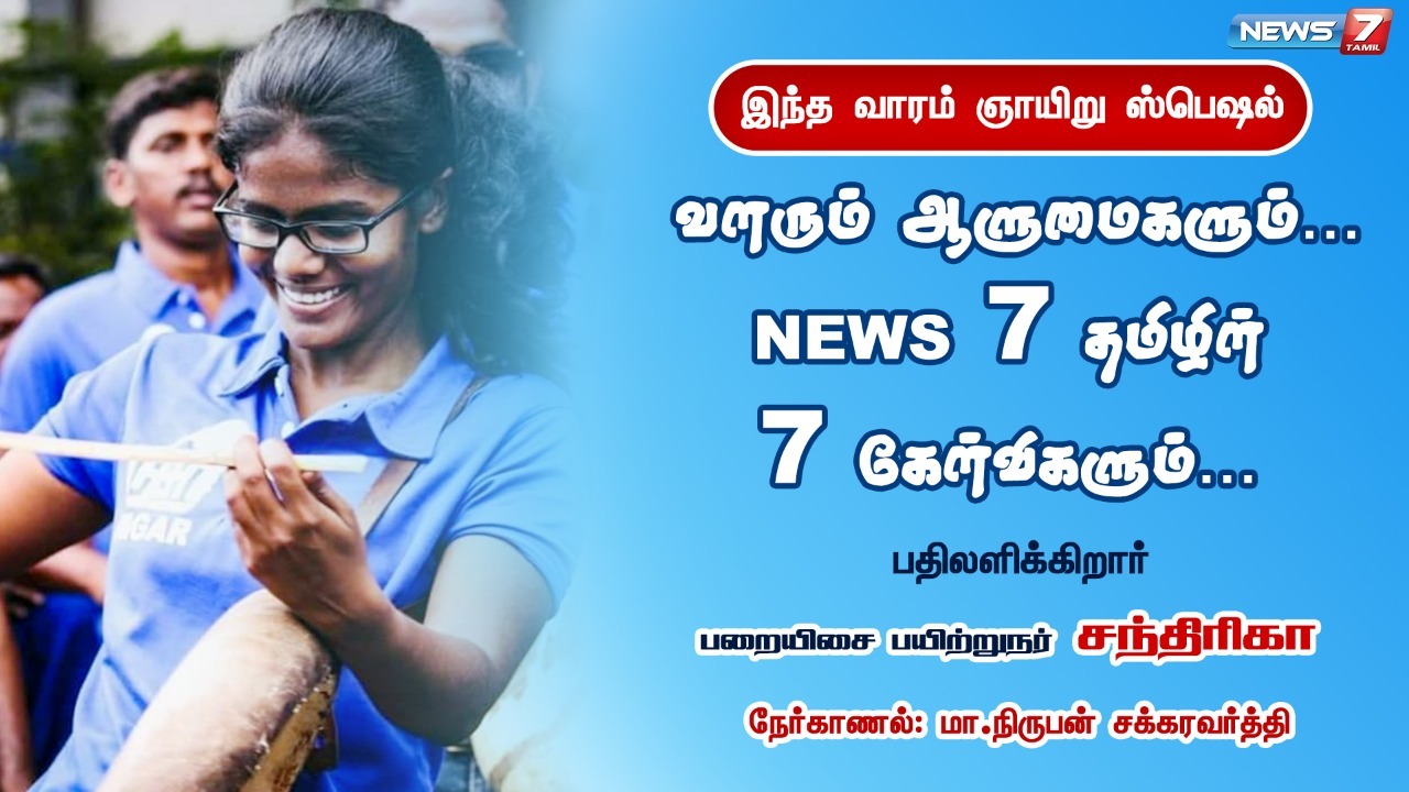 நியூஸ்7 தமிழின் இந்த வார வளரும் ஆளுமைகளும் 7 கேள்விகளும் பகுதியில் பறையிசை பயிற்றுநர் சந்திரிகாவுடன் சிறப்பு நேர்காணல்.