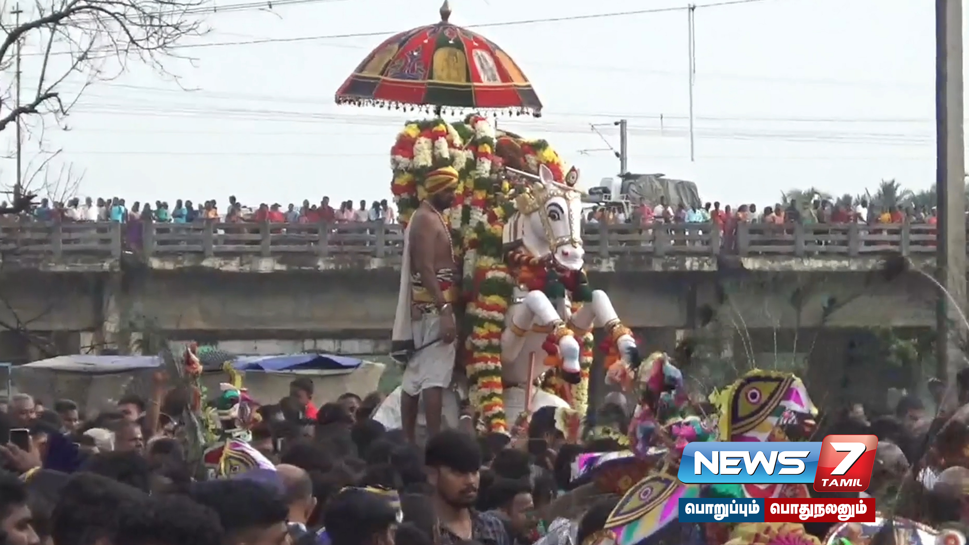 அங்கிருந்து ஏராளமான பக்தர்கள் சப்பரத்தை வடம் பிடித்து இழுத்து வந்து,
