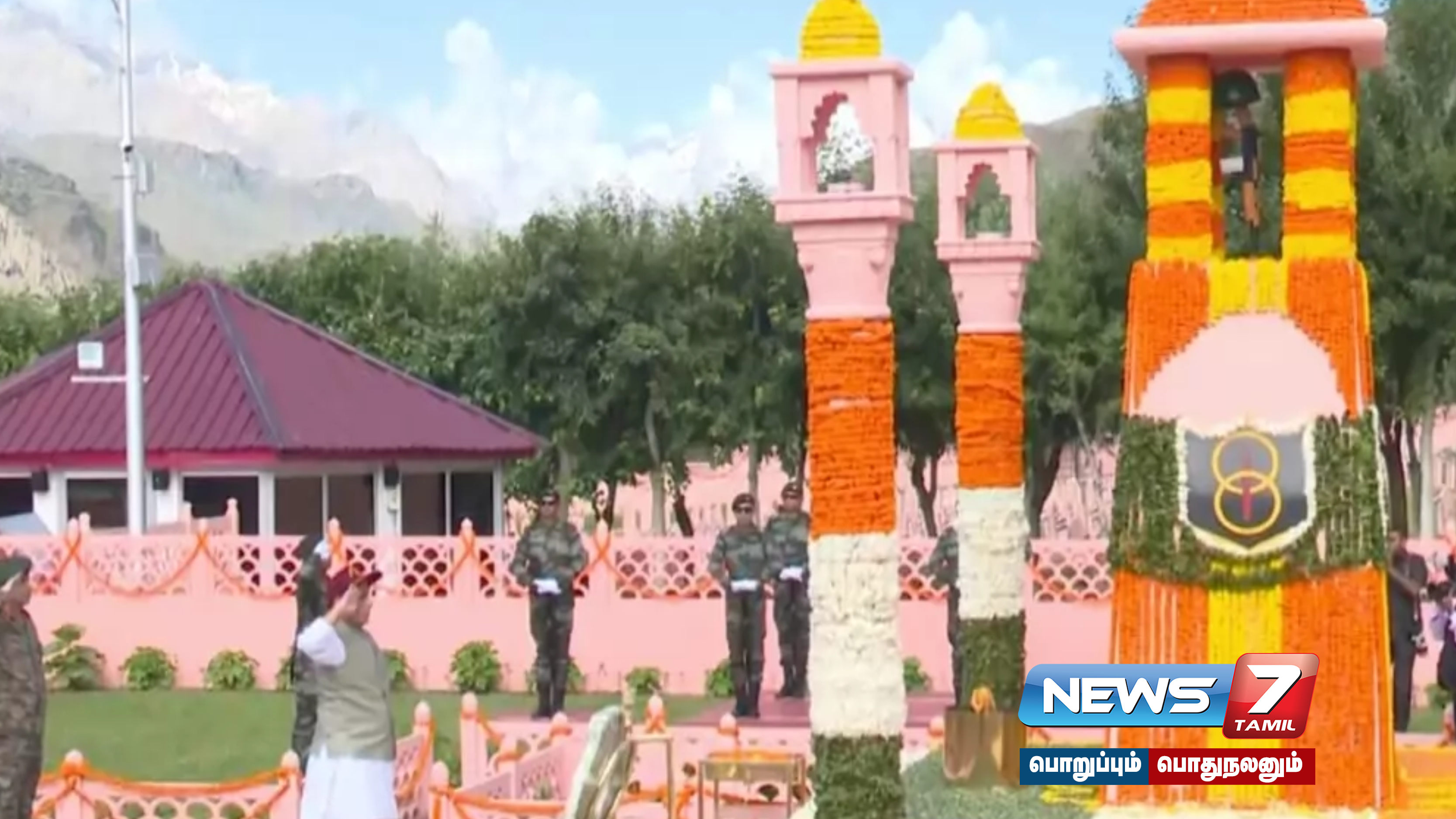 கார்கில் போர் வெற்றி தினத்தையொட்டி, வீர மரணம் அடைந்த ராணுவ வீரர்களுக்கு லடாக் நினைவிடத்தில் பாதுகாப்புத் துறை அமைச்சர் ராஜ்நாத் சிங் மரியாதை செலுத்தினார்.