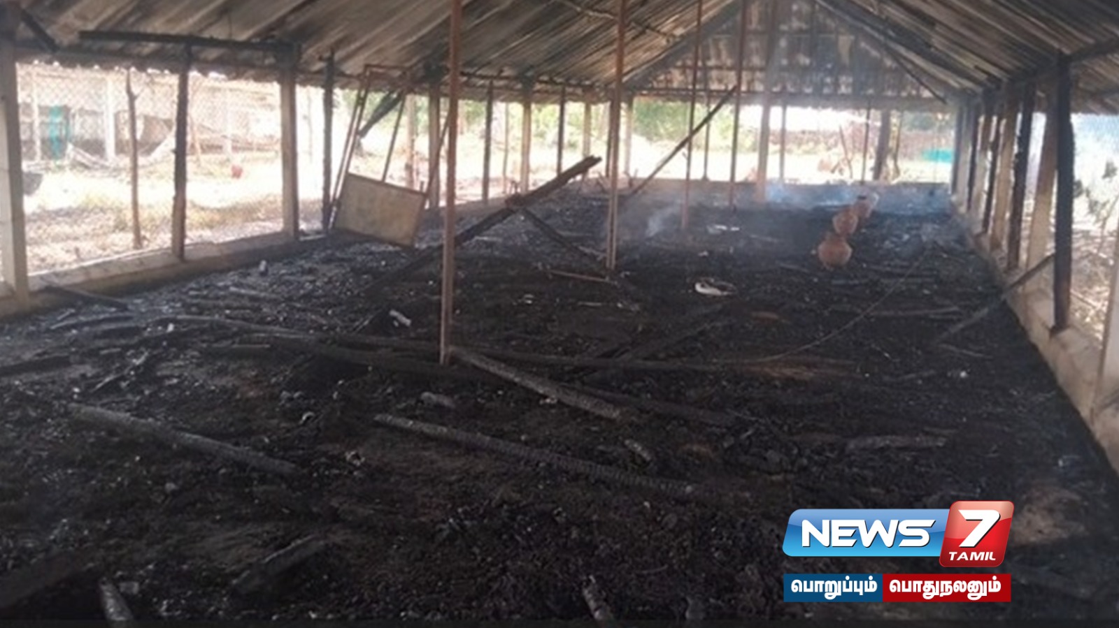 இதில் கோழி செட் மற்றும் குஞ்சுகளால் சுமார் 10 லட்சம் மதிப்பிலான பொருள்கள் எரிந்து சேதம் ஆயின.