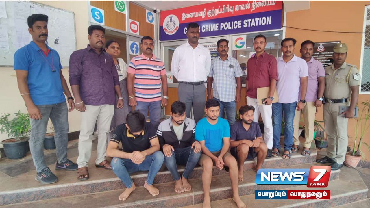 புதுச்சேரி லாஸ்பேட்டை பகுதியை சேர்ந்தவர் ரமேஷ். இவரிடம் முகதூல் மூலம் பேசிய இளைஞர்கள் வெளிநாட்டில் வேலைவாய்ப்பு இருப்பதாக கூறி ரூ.17 லட்சத்தை ஏமாற்றியுள்ளனர். இதனையடுத்து இவர் போலீசாரிடம் புகார் அளித்துள்ளார். இதன் பேரின் குற்றவாளிகளை தீவிரமாக தேடி வந்த போலீசார் உத்தரபிரதேசத்தை சேர்ந்த சுபம் ஷர்மா, தீபக் குமார், ராஜ் கவுண்ட், மற்றும் நீரஜ் குர்ஜார். ஆகிய பேரை கைது செய்தனர்.