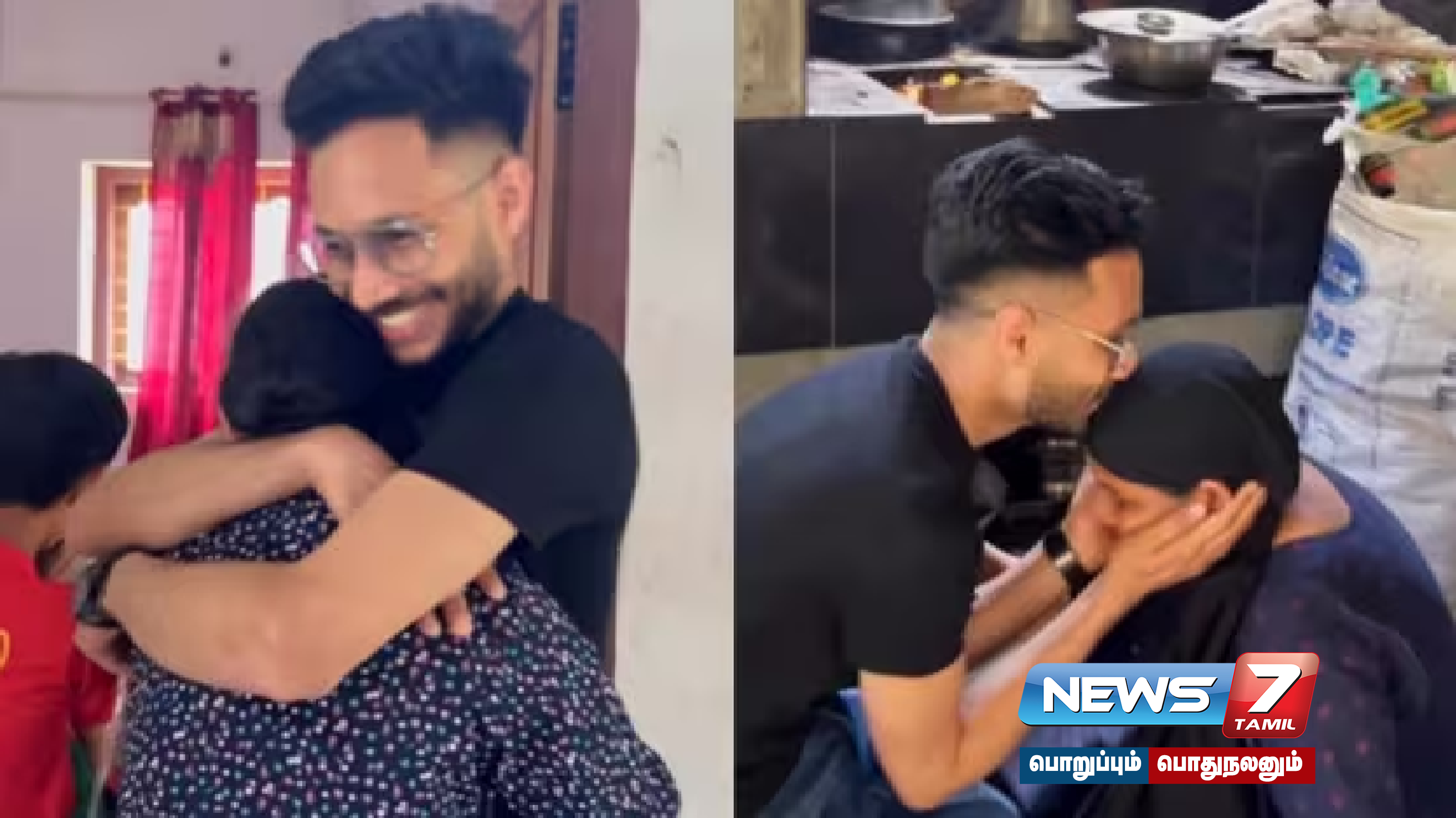 மகிழச்சியில் சிறுவன் சத்தம் எழுப்ப முயல அவன் வாயை மூடி உள்ளே அழைத்து செல்கிறார் அந்த இளைஞர். பின்னர் அவர் சகோதரியை பார்க்கிறார். அவரும் சந்தோசத்தில் துள்ள அப்படியே சமையல் அறைக்கு செல்கிறார் இளைஞர். அங்கு அவரது தாயார் சமையல் செய்து கொண்டிருக்கிறார். திடீரென மகனை கண்டவுடன் காலை கட்டிபிடித்துக்கொண்டு கீழே விழுந்து ஆனந்த கண்ணீர் வடிக்கிறார் அந்த அன்பு தாயார் . அன்சில் என்ற அந்த இளைஞர் பதிவேற்றம் செய்துள்ள வீடியோ இணையத்தில் வைரலாகி வருகிறது.