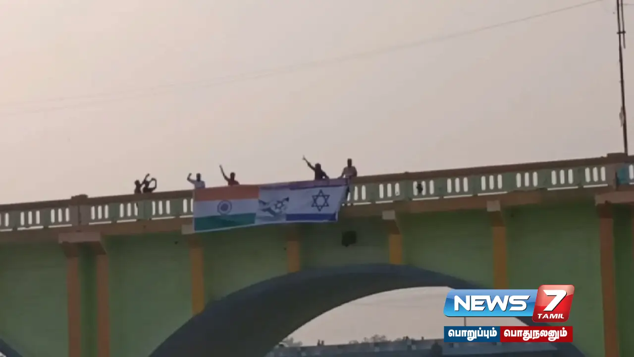 மதுரை மாநகர் கோரிப்பாளையம் பகுதியில் உள்ள ஏவி மேம்பாலத்தில் 4 இளைஞர்கள் இஸ்ரேல் மற்றும் இந்திய தேசியக் கொடிகள் அச்சிடப்பட்ட பேனரை பறக்க விட்டனர். அதில் INDIA STAND WITH ISRAEL என்ற வாசகத்துடன், இருநாடுகளும் கைகுலுக்குவது போன்ற படம் இருந்தது. உடன் பாரத் மாதா கி ஜே, ஜெய்ஸ்ரீராம், இந்தியா இந்து நாடு என்ற கோஷங்களை முழக்கமிட்டனர்.