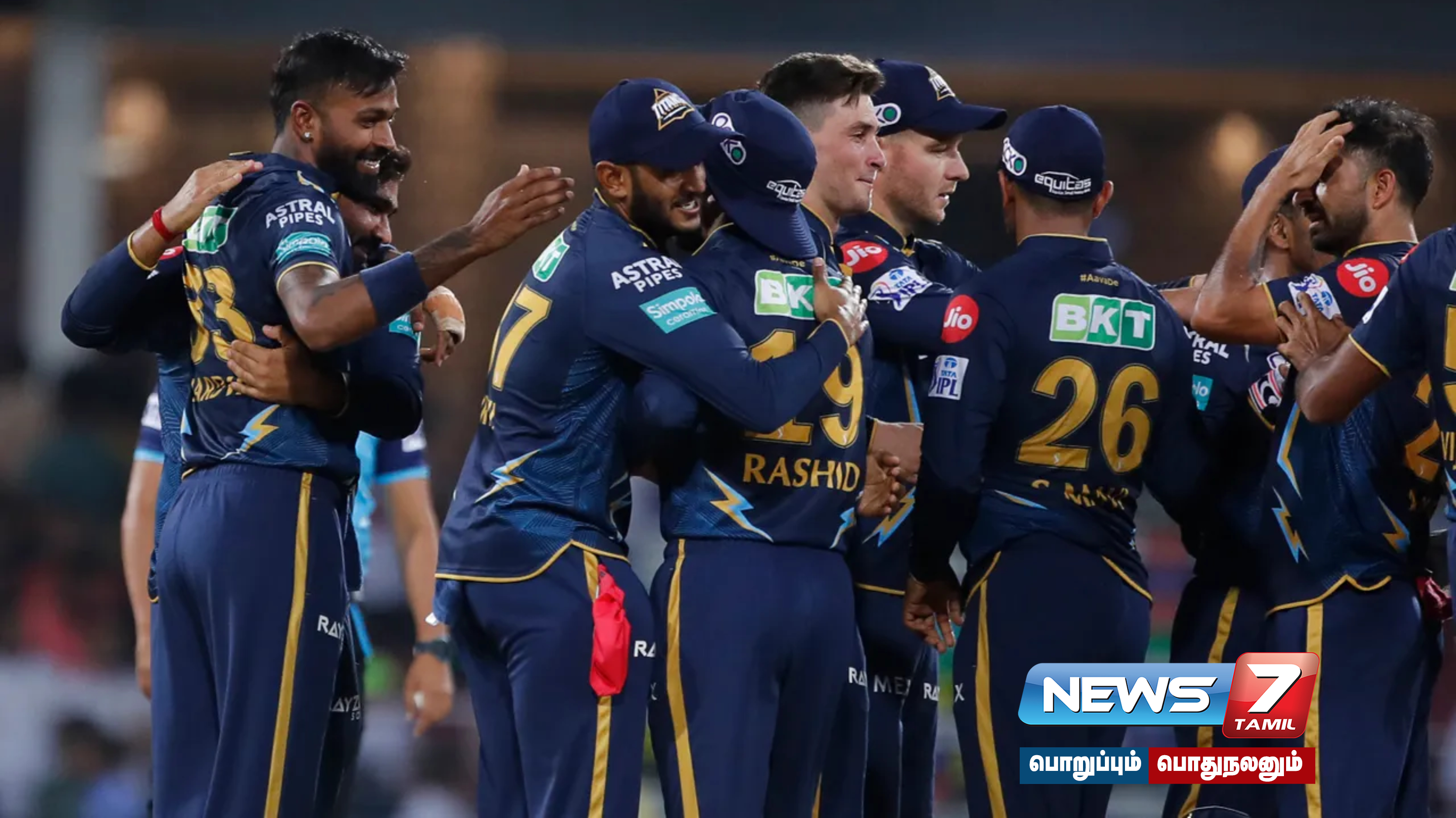 ஐபிஎல் 2023 கிரிக்கெட் தொடரில், லக்னோ சூப்பர் ஜெயண்ட்ஸ் அணிக்கு எதிரான போட்டியில் 7 ரன்கள் வித்தியாசத்தில் குஜராத் டைட்டன்ஸ் அணி த்ரில் வெற்றி பெற்றது.