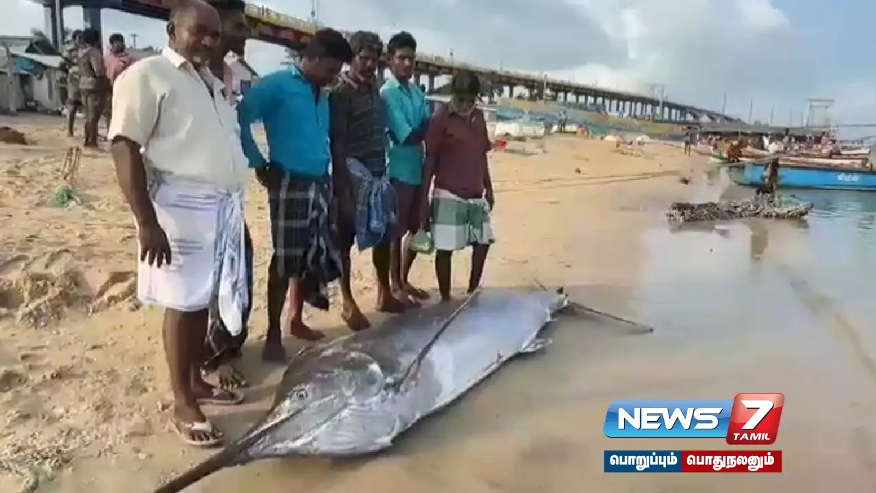 இந்நிலையில் பாம்பனைச் சேர்ந்த சாம்சன் என்பவருக்கு சொந்தமான நாட்டு படகில் 3 மீட்டர் நீளமுடைய 400 கிலோ எடை கொண்ட கொப்பர குலா என்றழைக்கப்படும் வாள் மீன் (SWORD FISH) மீன் ஒன்று சிக்கியது. இதனையடுத்து அந்த கொப்பர குலா மீனை கேரளா மீன் வியாபாரி ஒருவர் கிலோ ரூ.140 என ரூ.56 ஆயிரம் கொடுத்து வாங்கி சென்றதால் மீனவர்கள் மகிழ்ச்சி அடைந்தனர்.