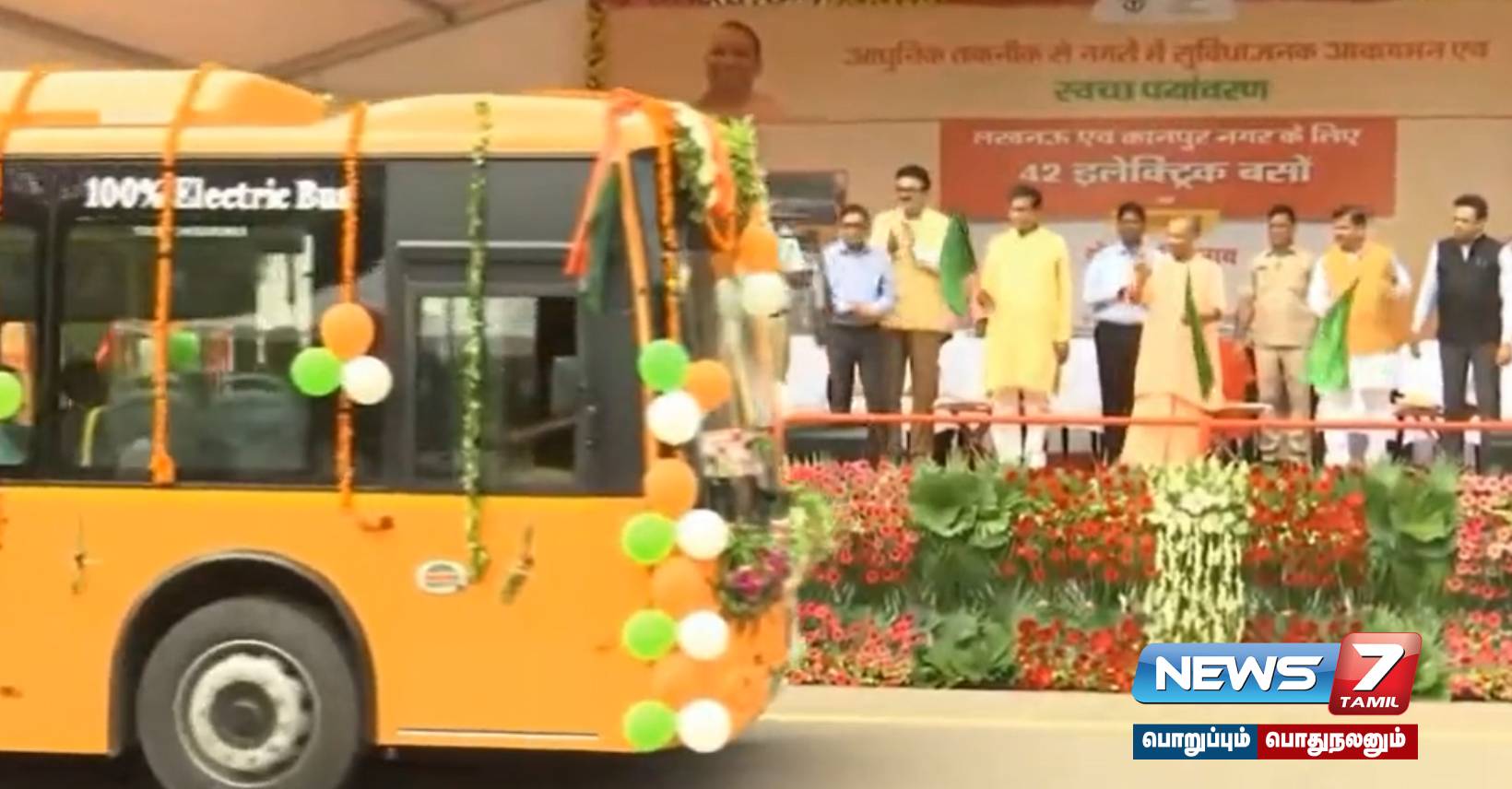 உத்தரப் பிரதேசத்தில் லக்னோ, கான்பூர் ஆகிய நகரங்களில் 42 மின்சாரப் பேருந்துகளை பொதுமக்களின் பயன்பாட்டுக்காக அந்த மாநில முதலமைச்சர் யோகி ஆதித்யநாத் இன்று கொடியசைத்துத் தொடங்கி வைத்தார்.