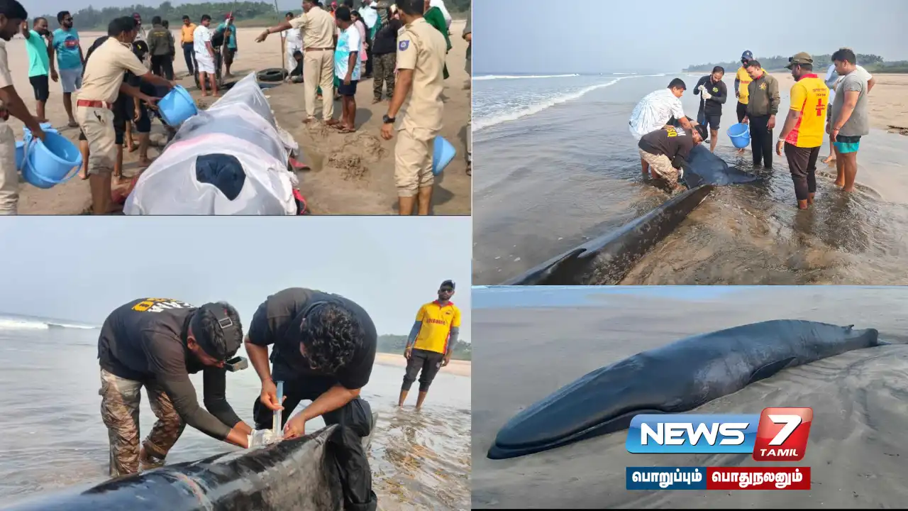மகாராஷ்டிர மாநிலம் ரத்தினகிரியில் கரை ஒதுங்கிய திமிங்கலம் பத்திரமாக கடலுக்குள் விடப்பட்டது.