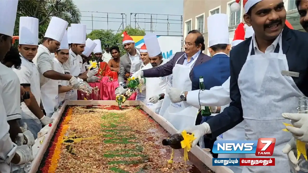 இதுகுறித்து பேசிய தலைமை சமையல் கலை நிபுணர் அருள்செல்வன், 50 வகையான பழங்கள் கொண்டு தயாரிக்கப்படும், இந்த கேக் கிறிஸ்துமஸ் தினத்தன்று