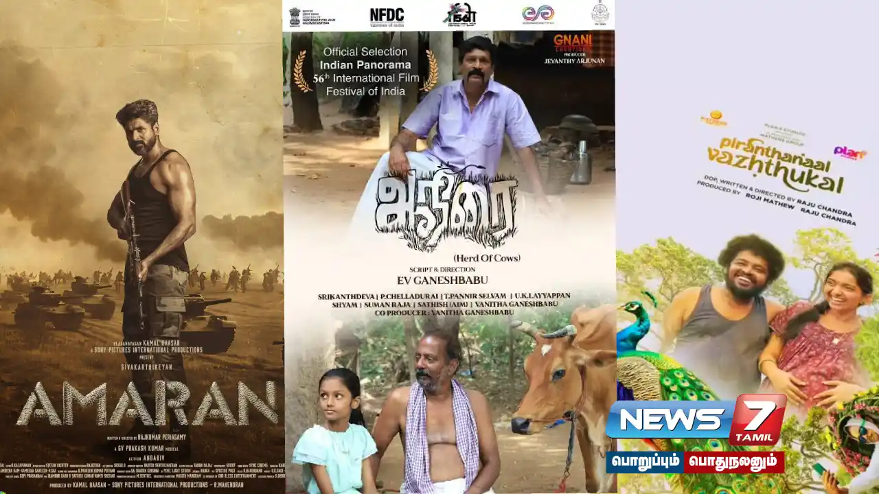 அதன்படி அறிமுக இயக்குநர் ராஜ்குமார் பெரியசாமி இயக்கத்தில் சிவகார்த்திகேயன், சாய்பல்லவி ஆகியோர் நடிப்பில் வெளியான ’அமரன்’, நடிகர் அப்புக் குட்டியின் ‘பிறந்தநாள் வாழ்த்துகள்’ மற்றும் இ.வி.கணேஷ்பாபு இயக்கி நடித்துள்ள ‘ஆநிரை’ என்ற குறும்படம் ஆகியவை தேர்வாகியுள்ளது.