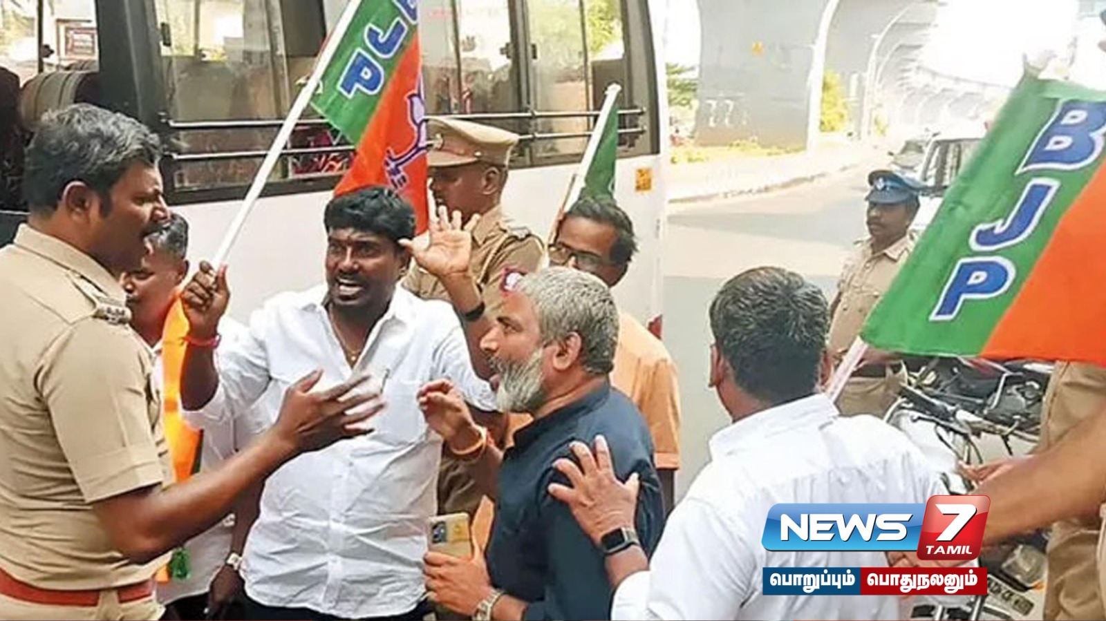சென்னையை அடுத்த நங்கநல்லூரில் ஆர்.எஸ்.பாரதி வீடு உள்ளது. அண்மையில் கோவில்பட்டியில் நடந்த திமுக பொது கூட்டத்தில் ஆட்சியை கலைத்தால் பா.ஜ.க.வினர் நடமாட முடியாது என ஆர்.எஸ். பாரதி பேசியதாக கூறப்படுகிறது. இதையடுத்து பா.ஜ.க. இளைஞரணி செயற்குழு உறுப்பினர் வினோத் குமார் தலைமையில் பா.ஜ.க.வினர் ஆர்.எஸ். பாரதி வீட்டை முற்றுகையிட சென்றனர். ஏற்கெனவே அங்கு வந்திருந்த போலீசார் அவர்களை தடுத்து நிறுத்து கைது செய்தனர்.