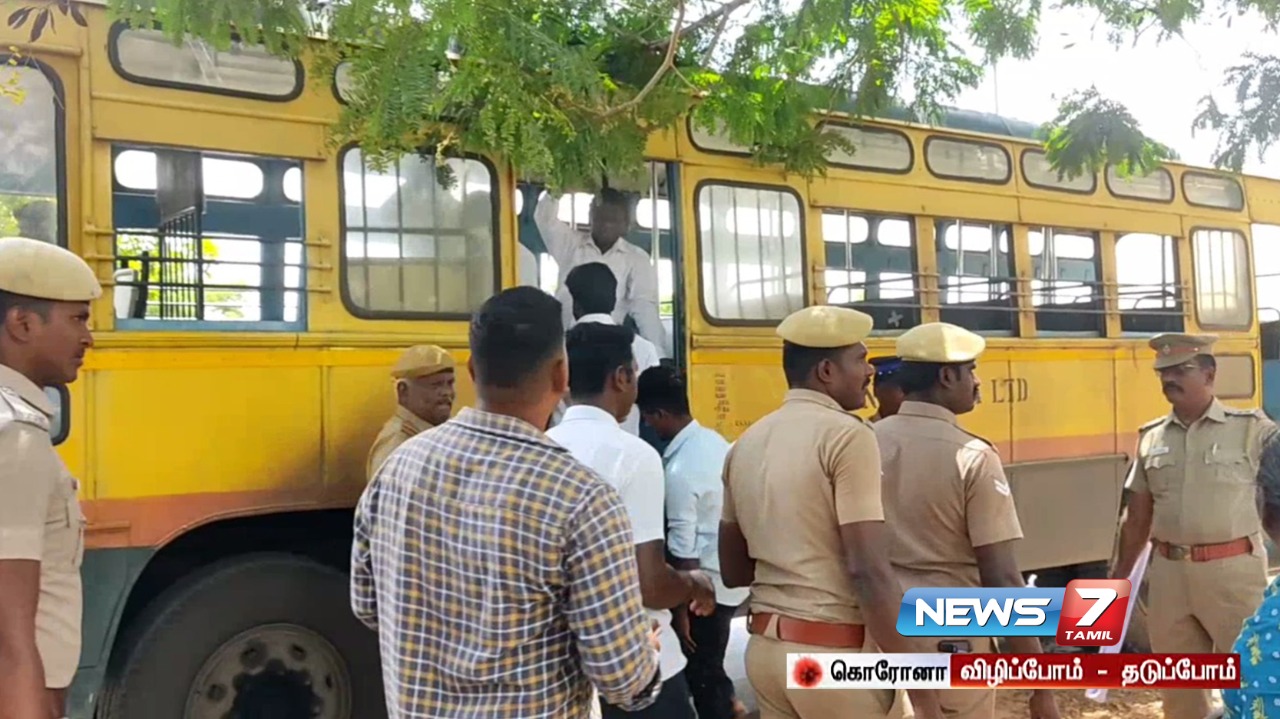 நெய்வேலி NLC நிறுவன தலைமை அலுவலகத்துக்குப் பூட்டு போட வந்த ஏழு பேரை போலீஸார் கைது செய்தனர்.