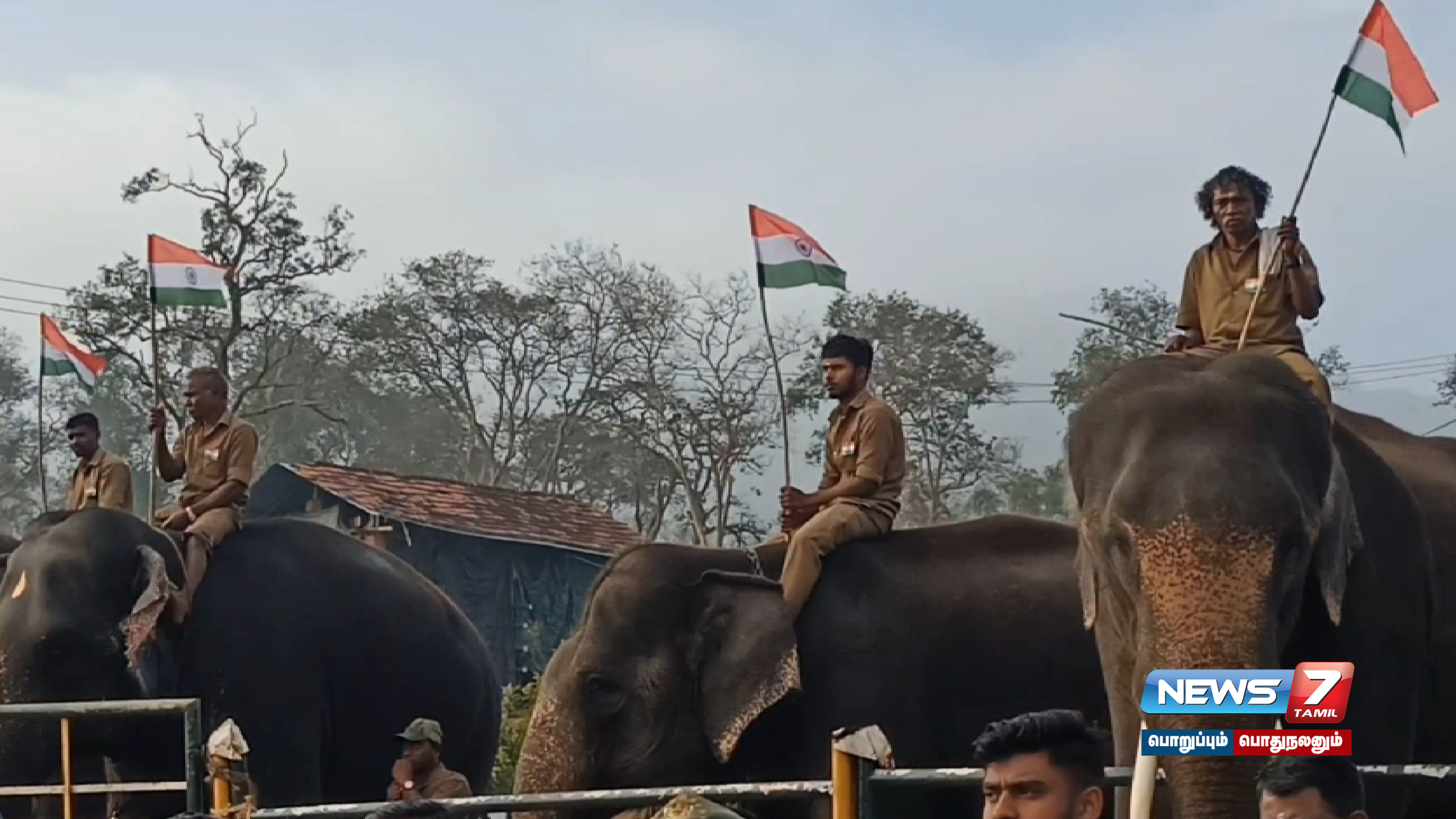 முதுமலை புலிகள் காப்பகத்தில் யானைகளுடன் 74 வது குடியரசு தின விழா கொண்டாடப்பட்டது. முகாமிலுள்ள யானைகள் தேசியக் கொடியை ஏந்தி நின்றது பார்ப்போரை ஆச்சர்யத்தில் ஆழ்த்தியது.