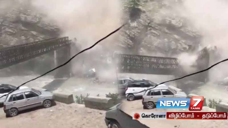உருண்டு வருவதும் பாலம் உடையும் காட்சிகளின் வீடியோவும் சமூக வலைதளங்களில் வைரலாகி வருகிறது.