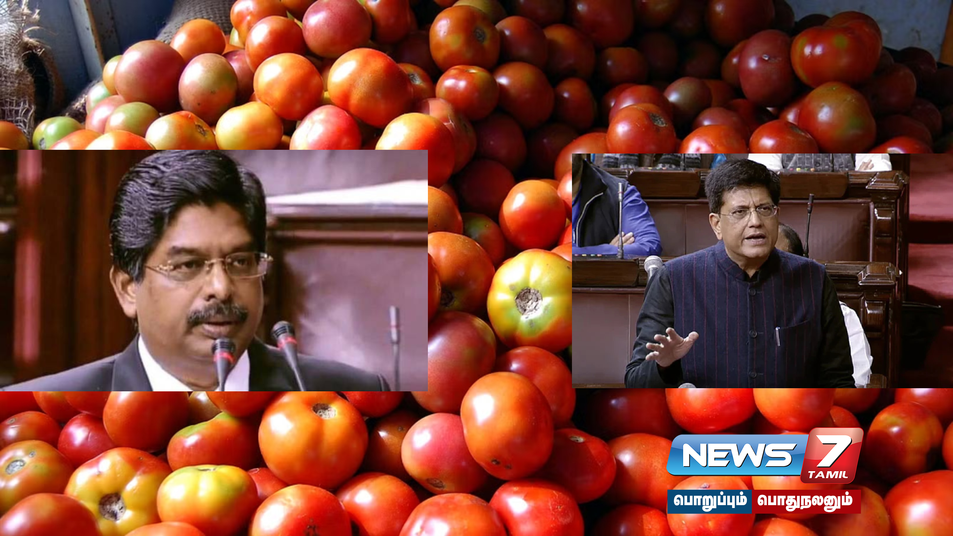 மாநிலங்களவை உறுப்பினர் வில்சன் தக்காளி விலை உயர்வு குறித்து நாடாளுமன்றத்தில் எழுத்துப்பூர்வமாக கேள்விகளை முன்வைத்திருந்த நிலையில், மத்திய நுகர்வோர் நலன், உணவு மற்றும் பொது விநியோக துறை அமைச்சர் பியூஷ் கோயல் பதில் அளித்துள்ளார்.