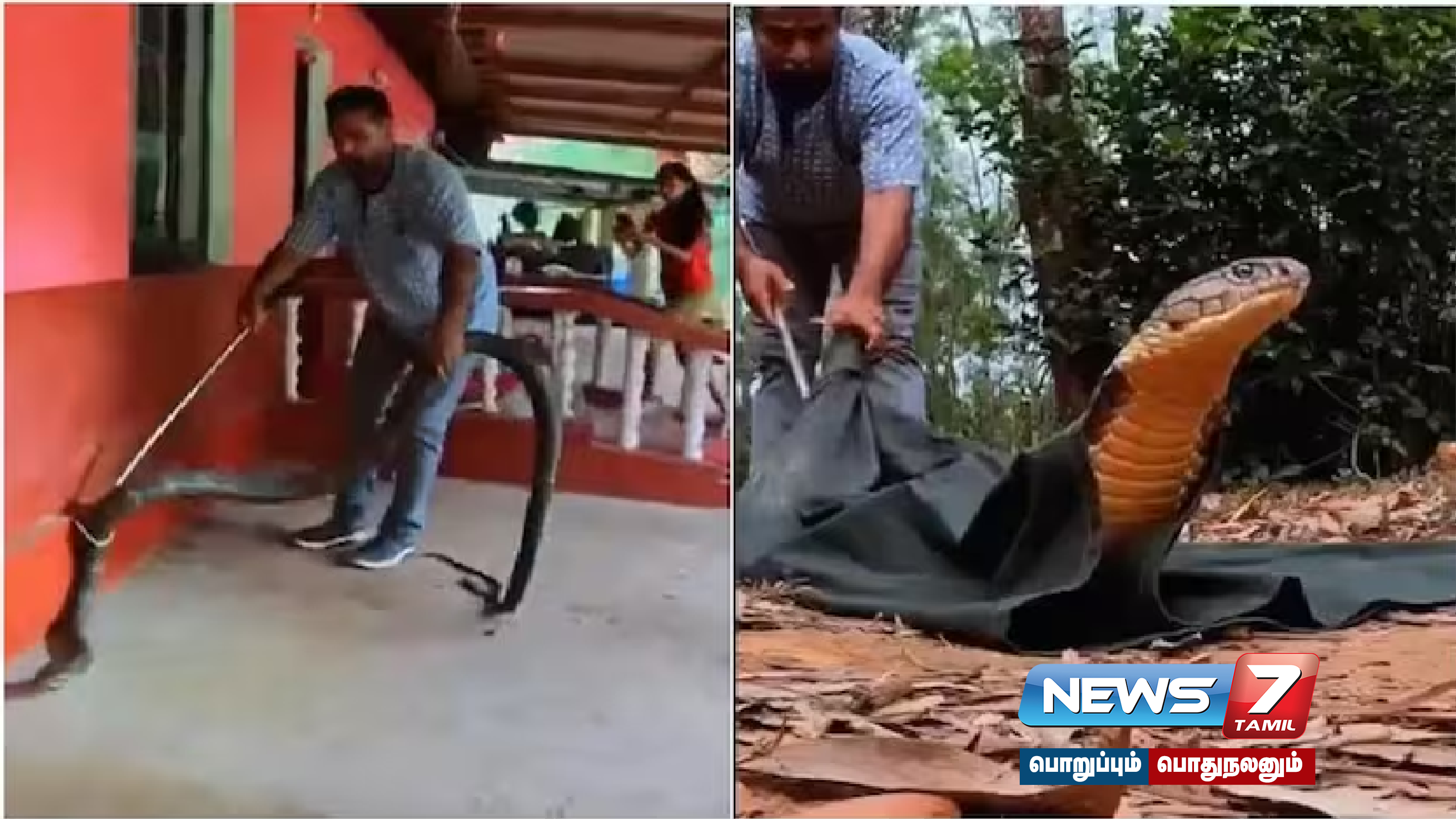 அவர் திறமையாக 15 அடி நீளமுள்ள ராஜ நாகத்தை பிடித்து ஒரு பையில் கொண்டு சென்றார். இதையடுத்து அந்த நபர் பாம்பை காட்டுக்குள் விட்டார்.