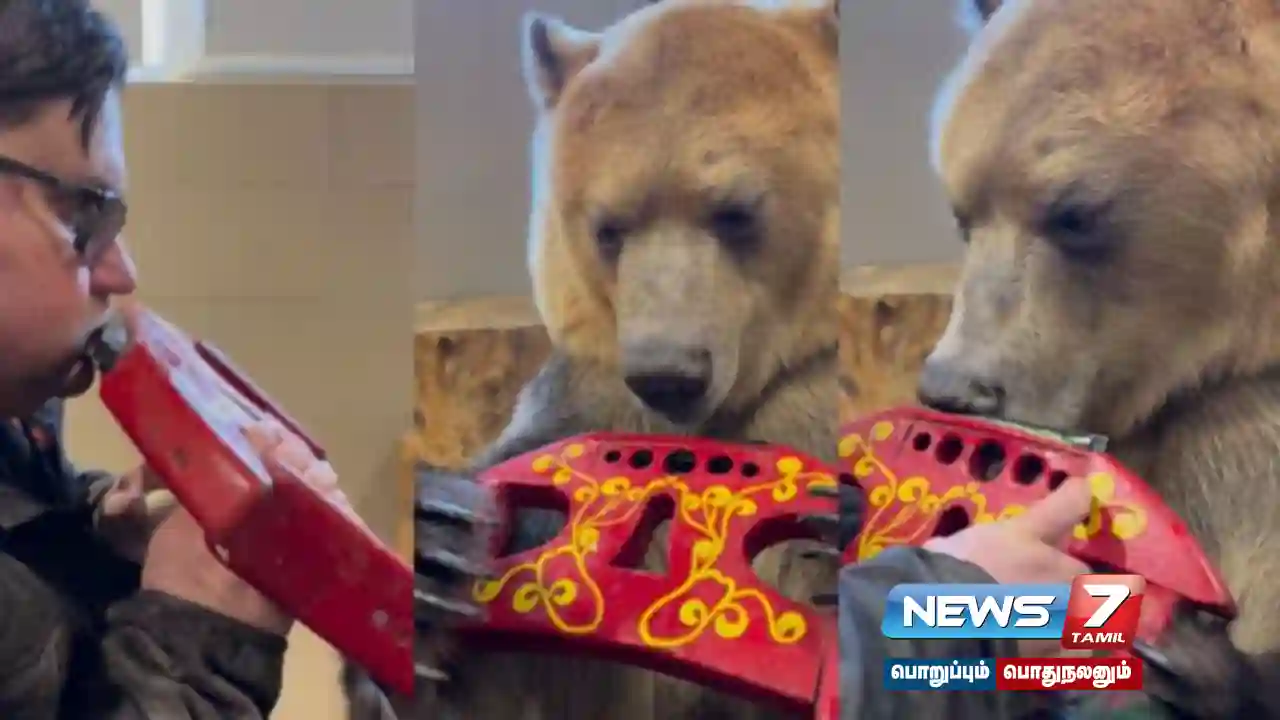 இந்த வீடியோ ‘panteleenko_svetlana’ என்ற இன்ஸ்டாகிராம் பக்கத்தில் பகிரப்பட்டுள்ளது. இதில் ரஷ்யாவைச் சேர்ந்த நபர் ஒருவர் மவுத் ஆர்கன் வாசிக்கிறார். பின்னர் அவர் அருகில் உள்ள தனது கரடியிடம் மவுத் ஆர்கனை கொடுக்கிறார். அந்த கரடி அதனை திருப்பி பார்த்துக் கொண்டிருக்கிறது. உடனே அவர் மவுத் ஆர்கனை கரடியின் வாயில் வைக்க உதவுகிறார். பின்னர் அந்த கரடி மவுத் ஆர்கனை வாசிக்கிறது. இந்த வீடியோ தற்போது வைரலாக பரவி வருகிறது.