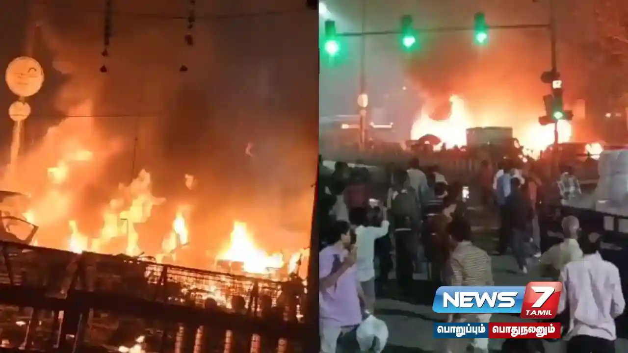 இதனால் அந்த இடத்தில் கூடியிருந்த மக்கள் கார் அலறியடித்து தப்பியோடினர். தகவலறிந்து சம்பவ இடத்திற்கு விரைந்து வந்த தீயணைப்புத் துறையினர் தீயைக் கட்டுப்படுத்தும் பணிகளில் ஈடுபட்டுள்ளனர்.