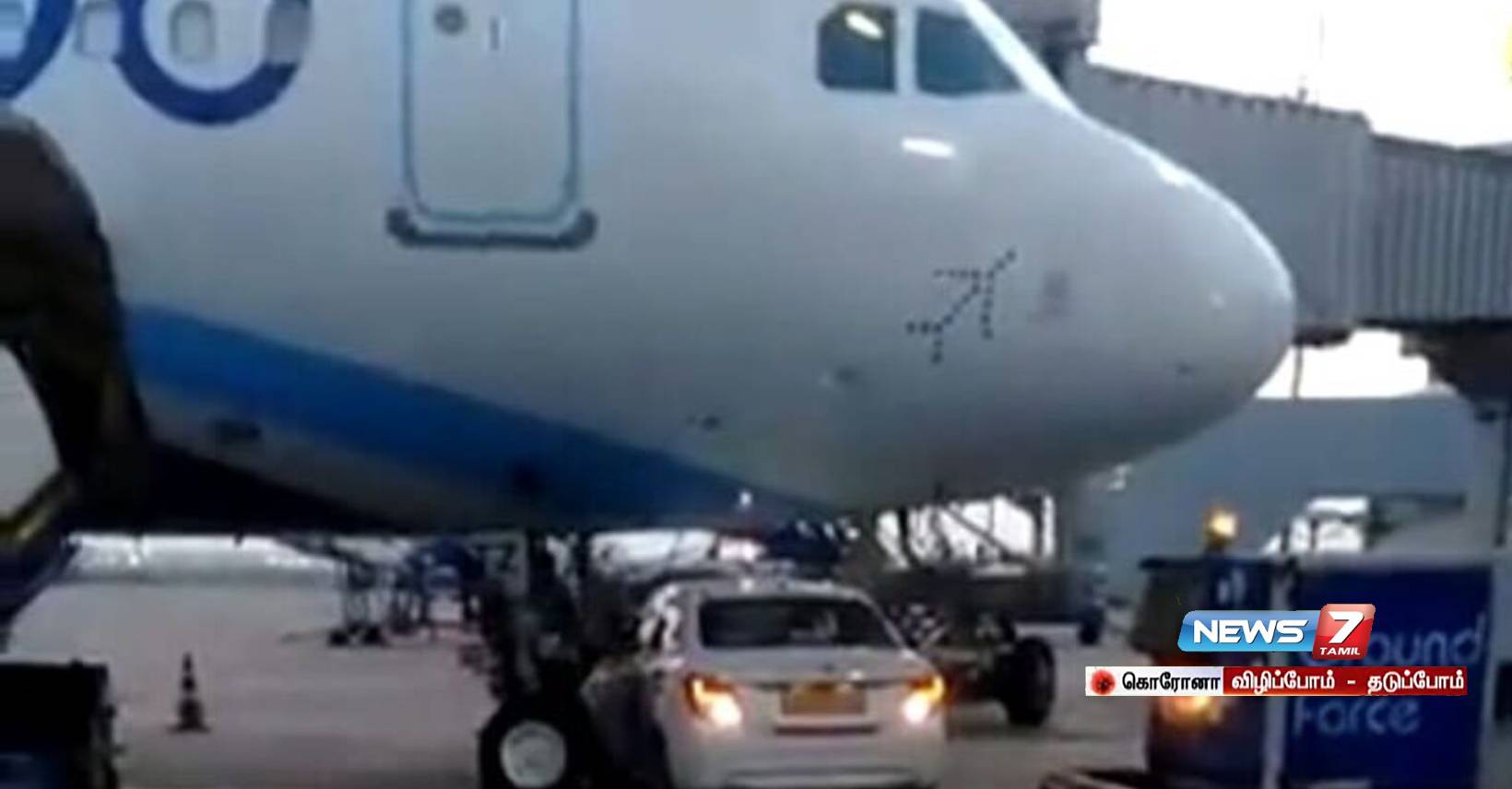 அதிருஷ்டவசமாக அந்தக் கார் விமானத்தின் முன்பக்க சக்கரத்தில் மோதவில்லை. ஒருவேளை விமான சக்கரங்களில் அந்தக் கார் மோதியிருந்தால் பெரிய விபத்து ஏற்பட்டிருக்கும்.