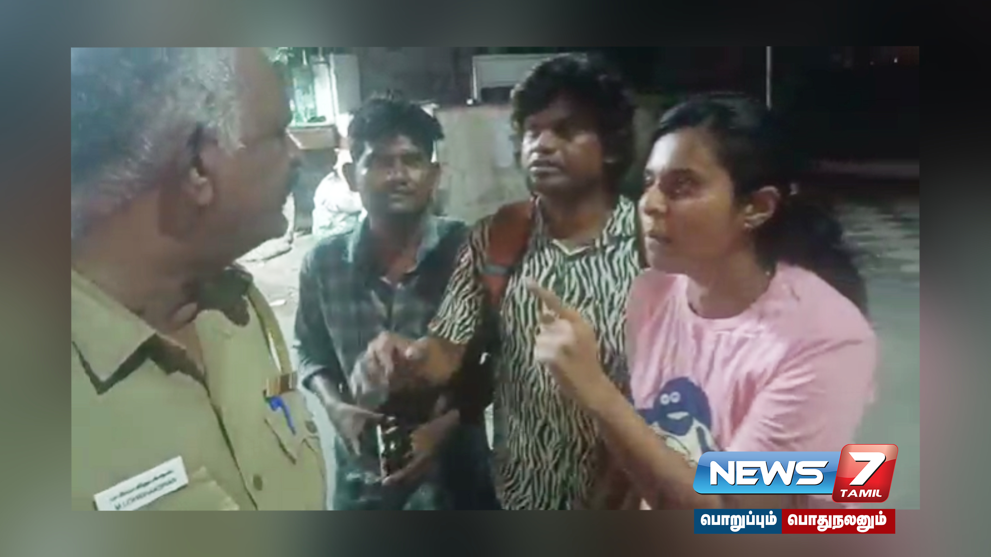 இதையடுத்து அங்கு வந்த அக்ஷயா , காவல் உதவி ஆய்வாளரிடம் சரமாரியாக கேள்விகளை எழுப்பியுள்ளார். குடித்துவிட்டு வாகனம் ஓட்டி வந்தால் மட்டுமே ஃபைன் போட வேண்டும் எனவும், வாகனத்தை தள்ளிக்கொண்டு வந்ததற்கெல்லாம் ஃபைன் போடக்கூடாது எனவும் ஆவேசமாக வாக்குவாதத்தில் ஈடுபட்டுள்ளார்.