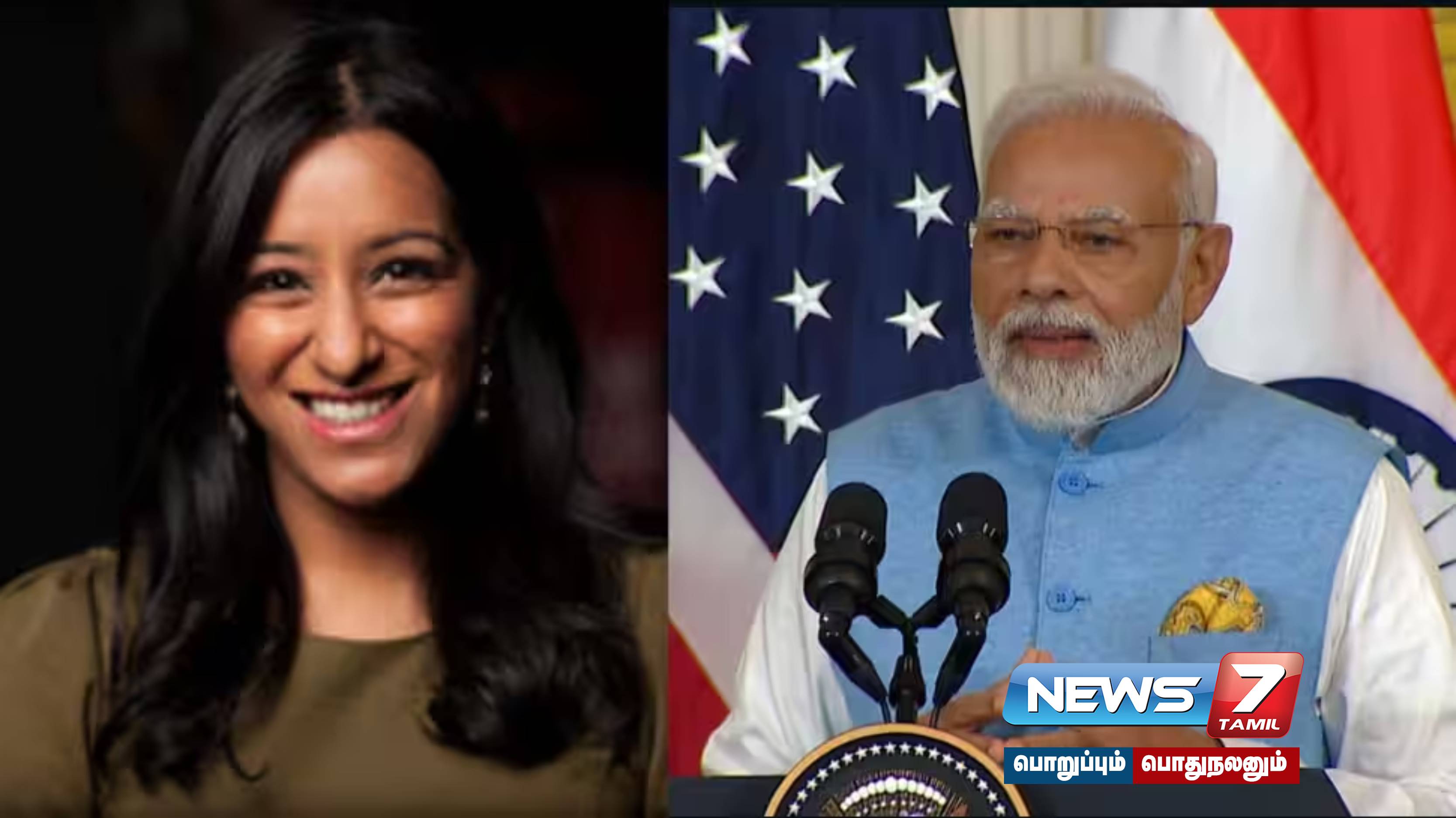 இந்த இரு தலைவர்களின் சந்திப்பு கடந்த வியாழக்கிழமை நடந்தது. அன்றைய தினம் பிரதமர் மோடி வாஷிங்டனில் உள்ள வெள்ளை மாளிகைக்கு சென்றார். மோடியை அமெரிக்க அதிபர் ஜோபைடன் மற்றும் அவரது மனைவி ஜில் பைடன் ஆகியோர் வரவேற்றனர். அதன்பிறகு வளாகத்தில் நடந்த நிகழ்ச்சியில் இரு தலைவர்களும் பேசினர்.