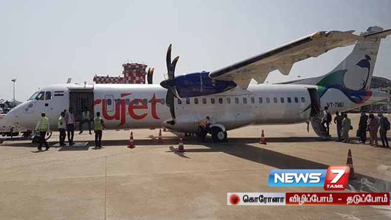 இதில் 10-க்கும் குறைவான பயணிகளே வந்தனர். கொரோனா அச்சம் காரணமாக விமானத்தை பயன்படுத்த பொதுமக்கள் தயக்கம் காட்டி வருவதாக விமான நிலைய அதிகாரிகள் தெரிவித்தனர்.