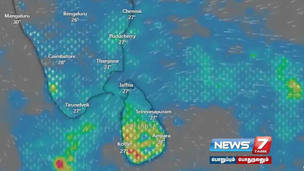 25-11-2025: தமிழ்நாட்டில் ஒருசில இடங்களிலும், புதுச்சேரி மற்றும் காரைக்கால் பகுதிகளிலும், இடி, மின்னலுடன் கூடிய லேசானது முதல் மிதமான மழை பெய்யக்கூடும். கன்னியாகுமரி, திருநெல்வேலி, தூத்துக்குடி மற்றும் இராமநாதபுரம் மாவட்டங்களில் ஓரிரு இடங்களிலும், காரைக்கால் பகுதிகளிலும் கனமழை பெய்யவாய்ப்புள்ளது.