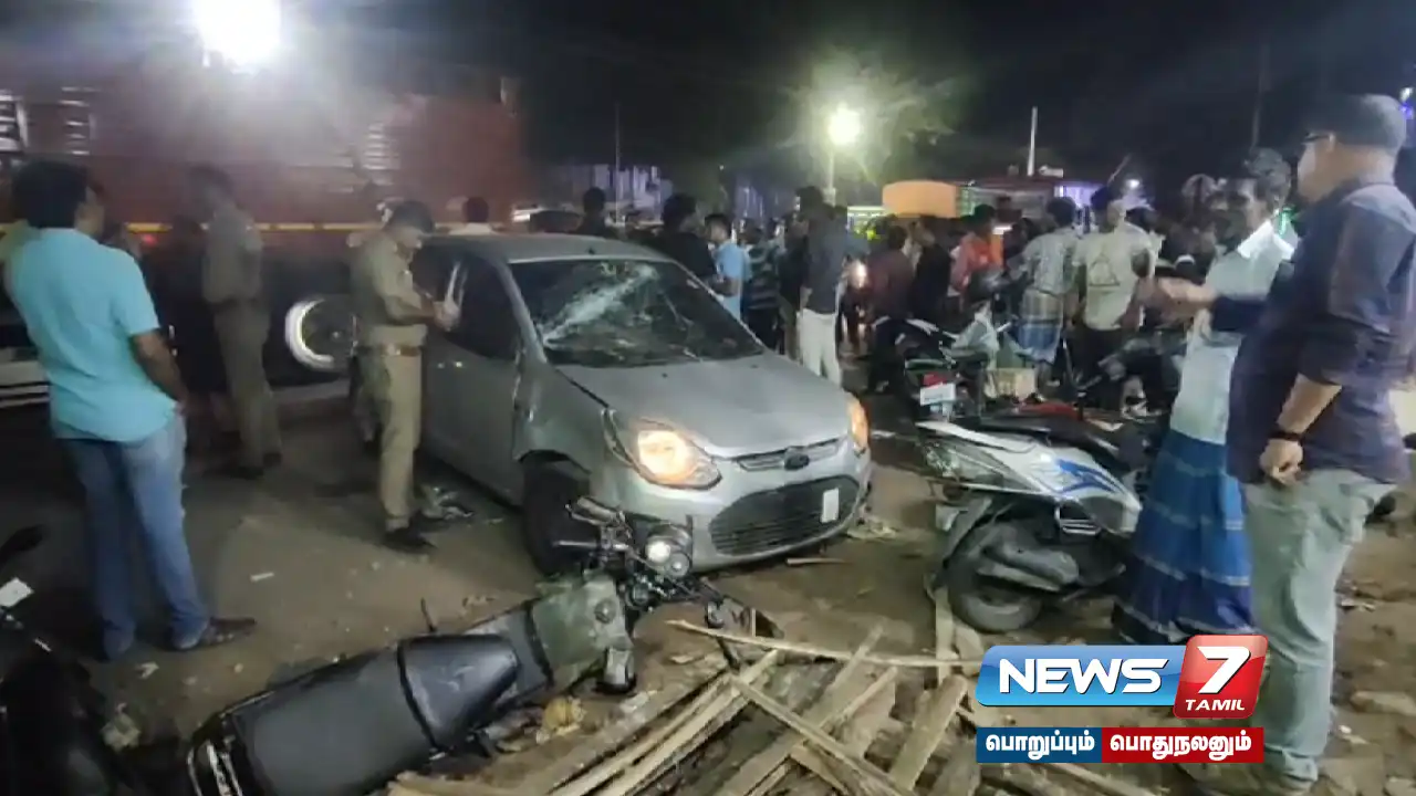 மதுபோதையில் காரை இயக்கி அடுத்தடுத்து 5-க்கும் மேற்பட்ட வாகனங்களை இடித்து, விபத்து ஏற்படுத்திய நபரை பொதுமக்கள் பிடித்து காவல்துறையினரிடம் ஒப்படைத்தனர்.