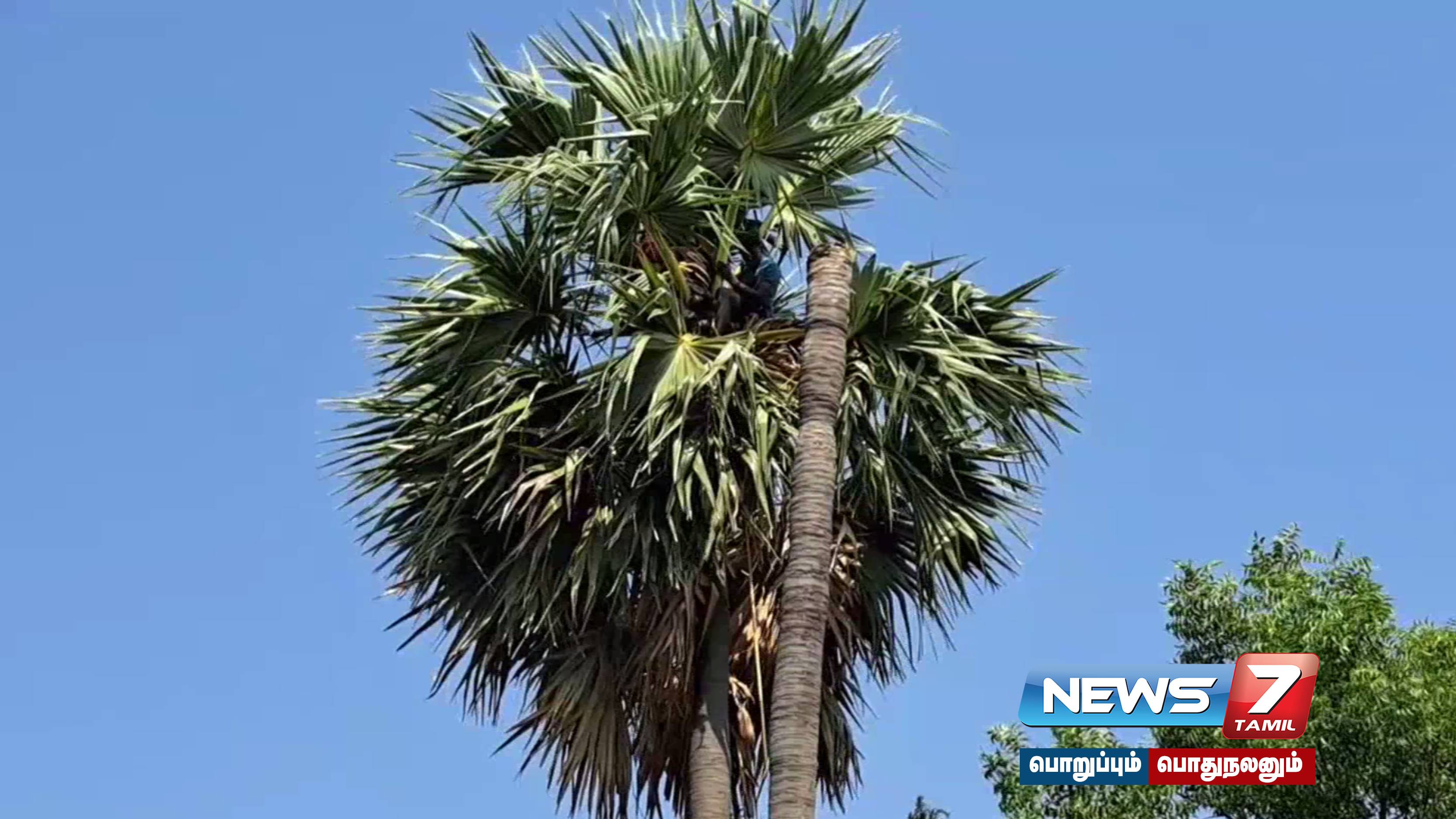 மதுபோதையில் பனைமர உச்சியில் ஏறி தூங்கிய நபரால் பரபரப்பு ஏற்பட்டுள்ளது.