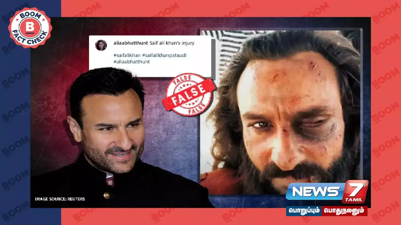 இது தவிர, அவரது ஒரு கண்ணிலும் பலத்த காயம் ஏற்பட்டுள்ளது. 2019 ஆம் ஆண்டு வெளியான ‘லால் கப்தான்’ படத்தில் சைஃப் அலி கான் நடித்த கதாபாத்திரத்தின் தோற்றத்தை வைரல் படம் காட்டுவதாக BOOM கண்டறிந்துள்ளது. இதற்கும் சமீபத்திய தாக்குதலுக்கும் எந்த தொடர்பும் இல்லை என்பதையும் உறுதிப்படுத்தியுள்ளது