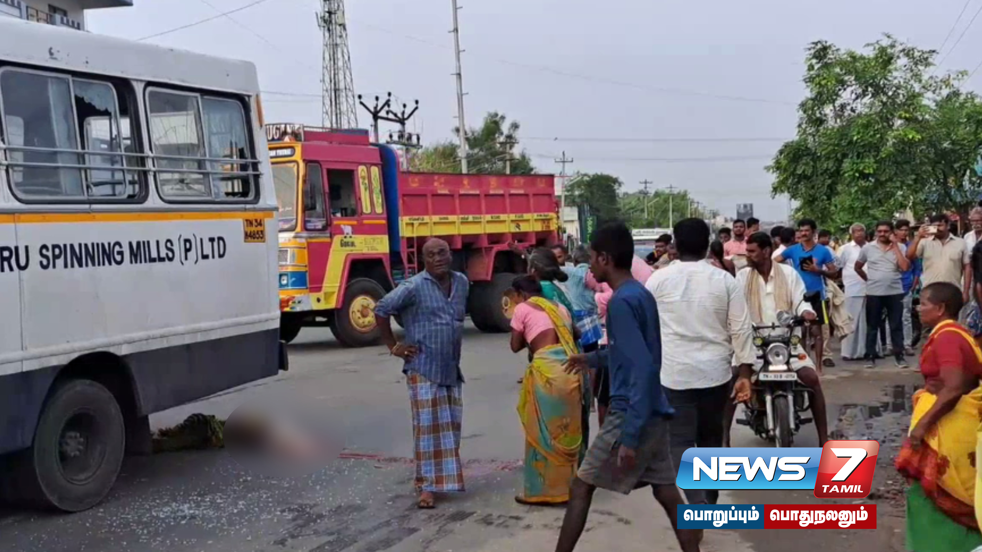 உடனடியாக அப்பகுதி மக்கள் படுகாயமடைந்த சிறுமியை மீட்டு சிகிச்சைக்காக அரசு மருத்துவமனைக்கு அனுப்பி வைத்தனர். இதற்கு முன்னதாக கோபமடைந்த மூதாட்டியின் உறவினர்கள் தனியார் நூற்பாலை வாகனத்தின் கண்ணாடியை உடைத்து சேதப்படுத்தினர்.