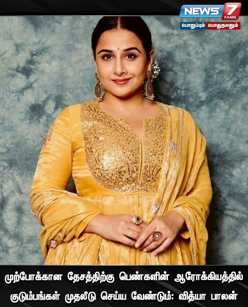 முற்போக்கான மற்றும் வெற்றிகரமான தேசத்திற்கு பெண்களின் ஆரோக்கியத்தில் குடும்பங்கள் முதலீடு செய்ய வேண்டும் என்று நடிகை வித்யா பாலன் கூறியுள்ளார்.