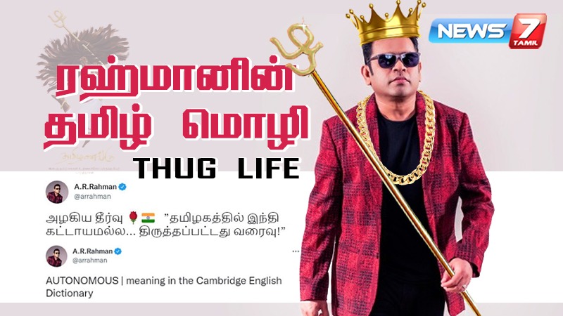 தமிழ் திரை இசைக்கலையை உலகம் முழுவதும் கொண்டாட வைத்தவர்களுள் முக்கியமானவர் இசைப்புயல் ஏ.ஆர். ரகுமான். பாலிவுட் முதல் ஹாலிவுட் வரை உச்சம் தொட்டு பல ‘சிக்ஸர்’ அடித்திருந்தாலும் தாய் தமிழ் மக்களையும் , மொழியையும் அவர் போற்றிப் பாடாத இடங்களே இல்லை எனலாம். ரோஜா படத்திற்கான தேசிய விருது தொடங்கி, ஹாலிவுட்டின் ஆஸ்கர் விருது வரை தமிழ் மொழியில் முழங்கி, அதன் பெருமையை உலகெங்கும் பறைசாற்றி இருக்கிறார். விழா மேடைகளில் தமிழ் மொழியை கொண்டாடும் அதே வேளையில் தமிழ் புறக்கணிக்கப்பட்டாலோ அல்லது தவிர்க்கப்பட்டாலோ ‘பீஸ்ட்’ மோடுக்கு மாறிவிடுவார். உடனே தன்னுடைய வார்த்தைகளை துப்பாக்கியாக்கி அதில் நையாண்டி எனும் புல்லட்டை‘லோட்’ செய்து சரமாரியாக சம்பவம் செய்வதே ‘ரஹ்மானின் ஸ்டைல்’. அதுவே ரஹ்மானின் ‘தக் லைஃப்(thug life)’ என்றழைக்கப்படுகிறது. அப்படி ரகுமான் செய்த சில சம்பவங்களை பார்க்கலாம்..