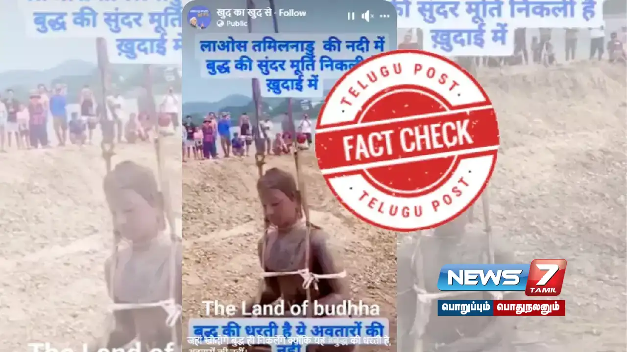 இந்நிலையில் சமூக வலைதளங்களில் ஒரு வீடியோ பரவி வருகிறது. அதில் தமிழ்நாட்டின் ஒரு நதியின் அருகே அகழ்வாராய்ச்சியின் போது ஒரு அழகான புத்தர் சிலை கண்டுபிடிக்கப்பட்டதாக கூறப்பட்டுள்ளது. அந்த வீடியோவை பகிர்ந்த Facebook பயனர், “खुद का खुद से” என்ற பெயரில், “जहां खोदोगे बुद्ध ही निकलेंगे क्योंकि ये बुद्ध की धरती है अवतारों की नहीं।” என்று எழுதியுள்ளார். இதை தமிழில் மொழிப் பெயர்த்தால், “நீங்கள் எங்கு தோண்டினாலும், புத்தரின் சிலை தான் கிடைக்கும், ஏனெனில் இது புத்தரின் நிலம்; அவதாரங்களின் நிலம் அல்ல” எனப் பொருள்படுகிறது.