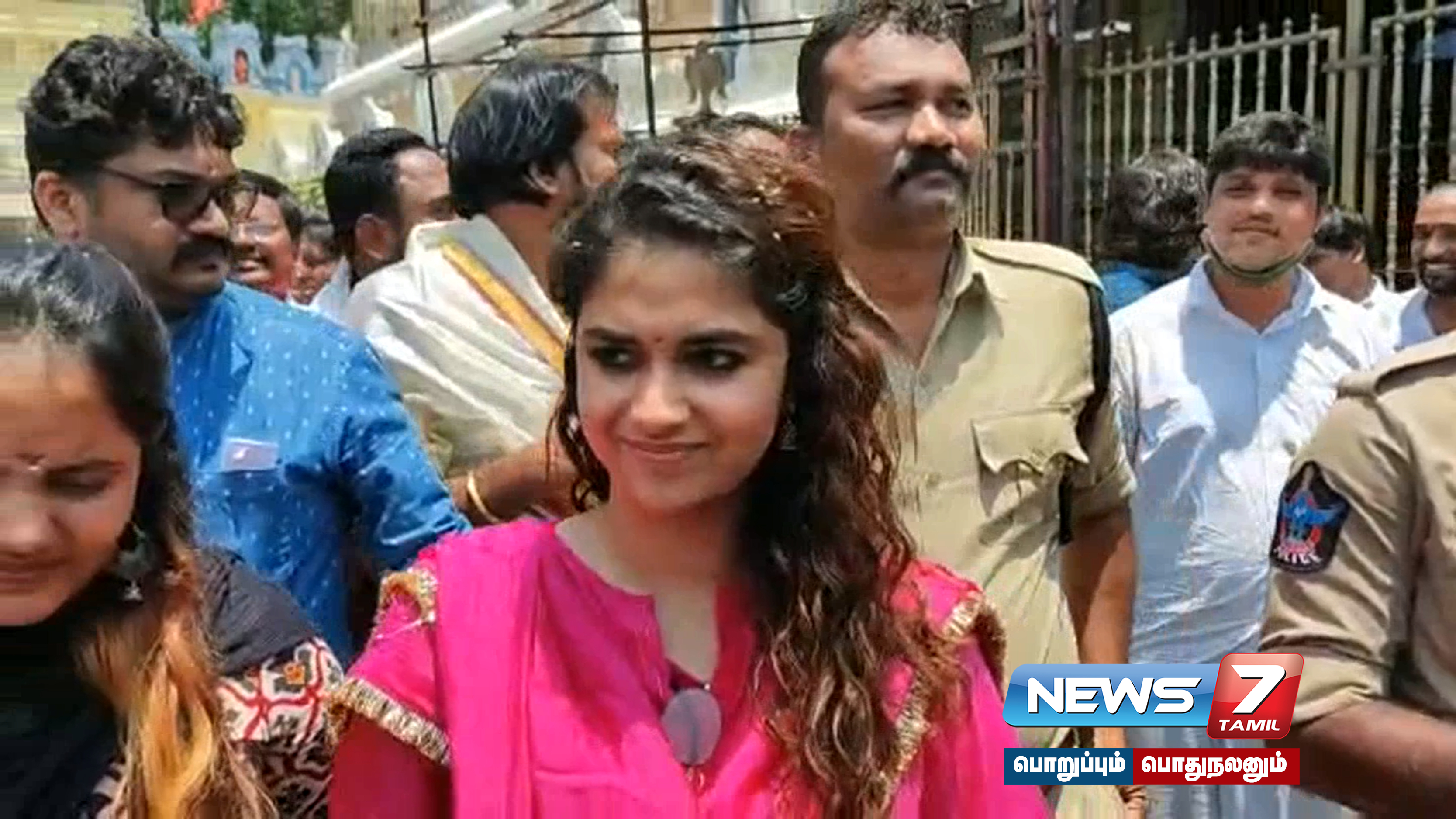 கோவிலுக்கு வெளியே கீர்த்தி சுரேஷுடன் ரசிகர்கள் போட்டி போட்டு செல்பி எடுத்துக்கொண்டனர். இதனால் அங்கு கூட்ட நெரிசல் ஏற்பட்டது. பின்னர் தேவஸ்தான ஊழியர்கள் அவரை பேட்டரி காரில் ஏற்றி பாதுகாப்பாக அனுப்பி வைத்தனர்.