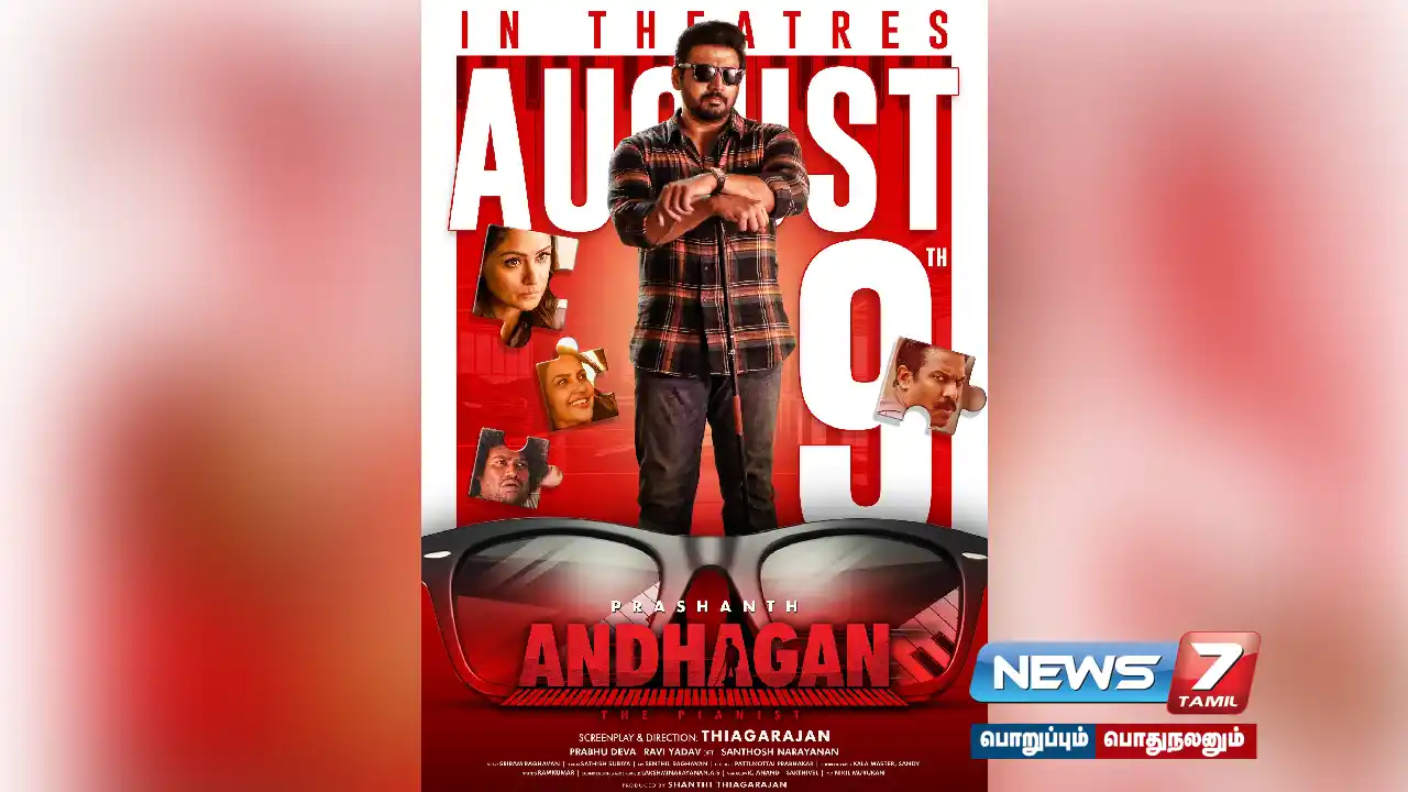 2021 முதல் 2022 வரையிலான காலகட்டத்திலேயே எடுத்து முடிக்கப்பட்ட இந்த படம் சில சிக்கல்களால் வெளிவராமல் இருந்த நிலையில், ஆகஸ்ட் 15ஆம் தேதி வெளியிட உள்ளதாக அறிவிக்கப்பட்டது. அதே நாளில் விக்ரமின் ‘தங்கலான்’, கீர்த்தி சுரேஷின் ‘ரகு தாத்தா’, ‘டிமான்டி காலனி 2’ ஆகிய படங்கள் வெளியாக உள்ளது. இந்நிலையில் அந்தகன் படத்தின் ரிலீஸ் தேதி மாற்றப்பட்டுள்ளது. அதன்படி, ஆக. 9-ல் இந்தப் படம் வெளியாக இருப்பதாக படக்குழு அறிவித்துள்ளது.