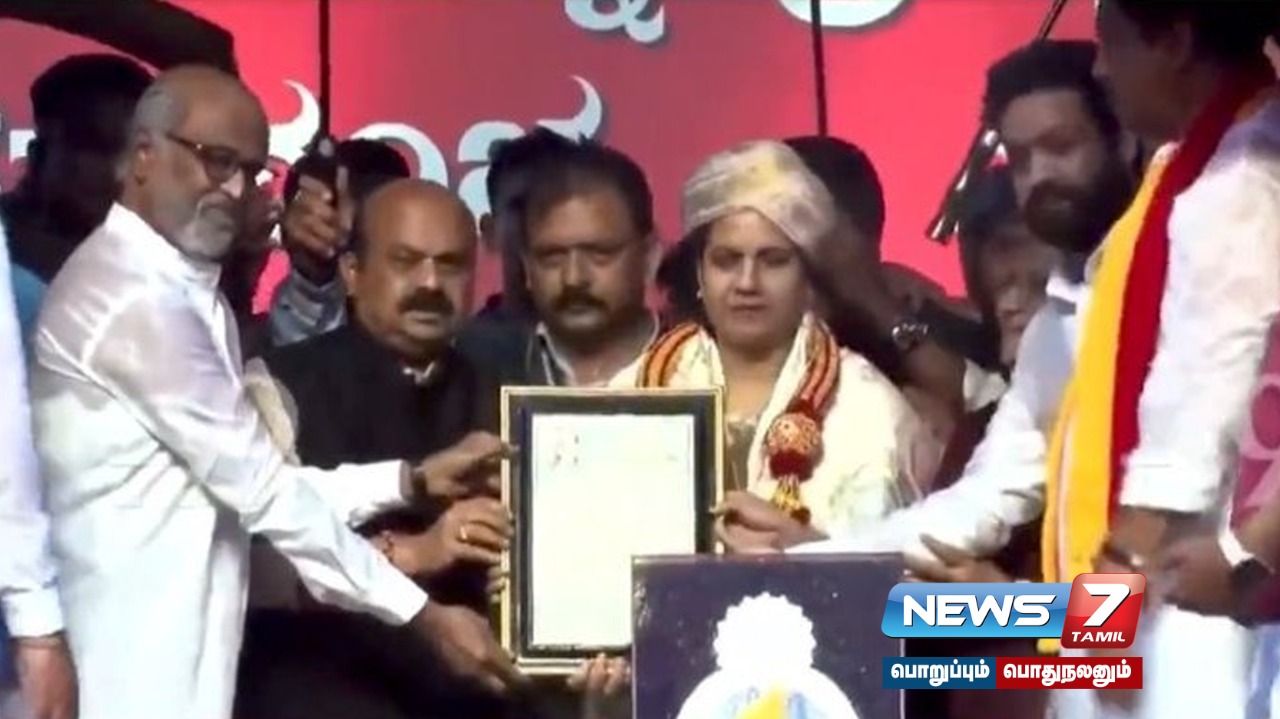இதையடுத்து, விழாவில் புனித் ராஜ்குமாரின் மனைவி அஸ்வினி புனித் ராஜ்குமாரிடம் கர்நாடக ரத்னா விருதை முதலமைச்சர் பசவராஜ் பொம்மை, நடிகர்கள் ரஜினிகாந்த், ஜூனியர் என்.டி.ஆர். ஆகியோர் இணைந்து வழங்கினார். பின்னர் நிகழ்ச்சியில் பேசிய நடிகர் ரஜினிகாந்த், அனைவரும் சகோதரர்களாக, சாதி மத பேதமின்றி, ஒன்றாக சந்தோஷமாக, நிம்மதியாக இருக்க வேண்டும் என ராஜ ராஜேஷ்வரி, அல்லா, ஜீசசை வேண்டிகொள்கிறேன் என்றார்.