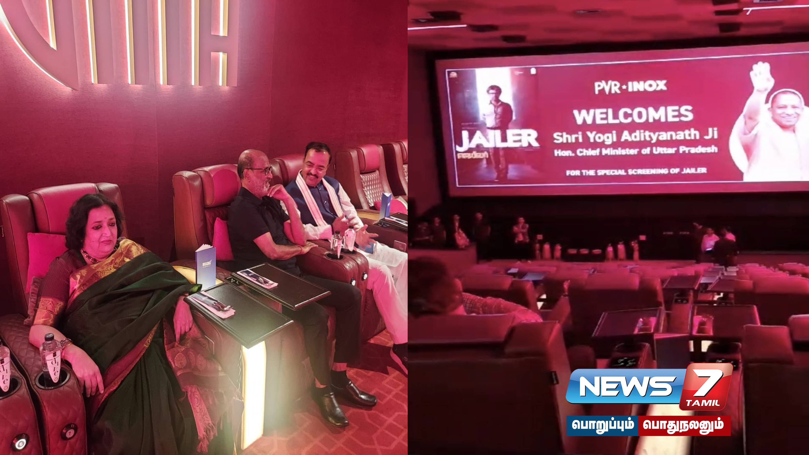 உத்தரப்பிரதேச துணை முதலமைச்சர் கேசவ பிரசாத் மவுரியா உடன் சேர்ந்து நடிகர் ரஜினிகாந்த் மற்றும் அவரது மனைவி லதா ‘ஜெயிலர்’ திரைப்படத்தை பார்த்த புகைப்படம் சமூக வலைதளங்களில் வைரலாகியுள்ளது.