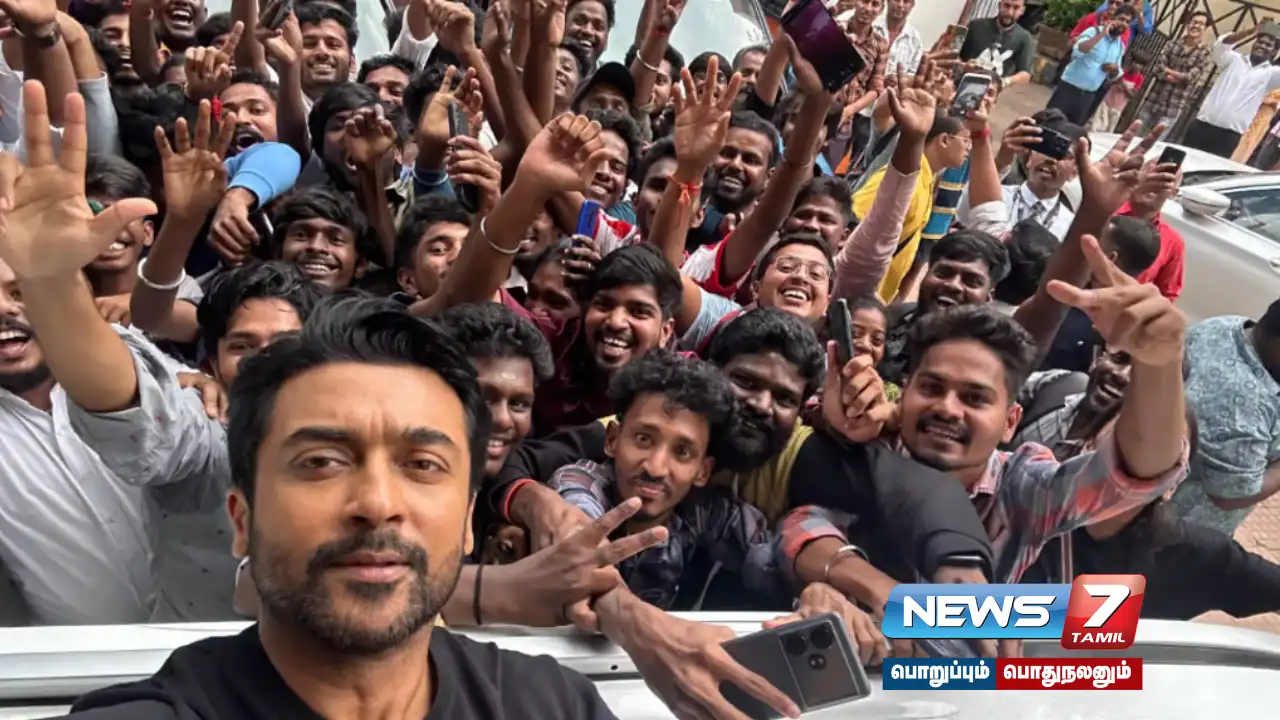 அப்போது அங்கு திரண்ட ரசிகர்களுடன் நடிகர் சூர்யா செல்ஃபி எடுத்துக்கொண்டார். இப்புகைப்படம் தற்போது இணையத்தில் வைரலாகி வருகிறது.