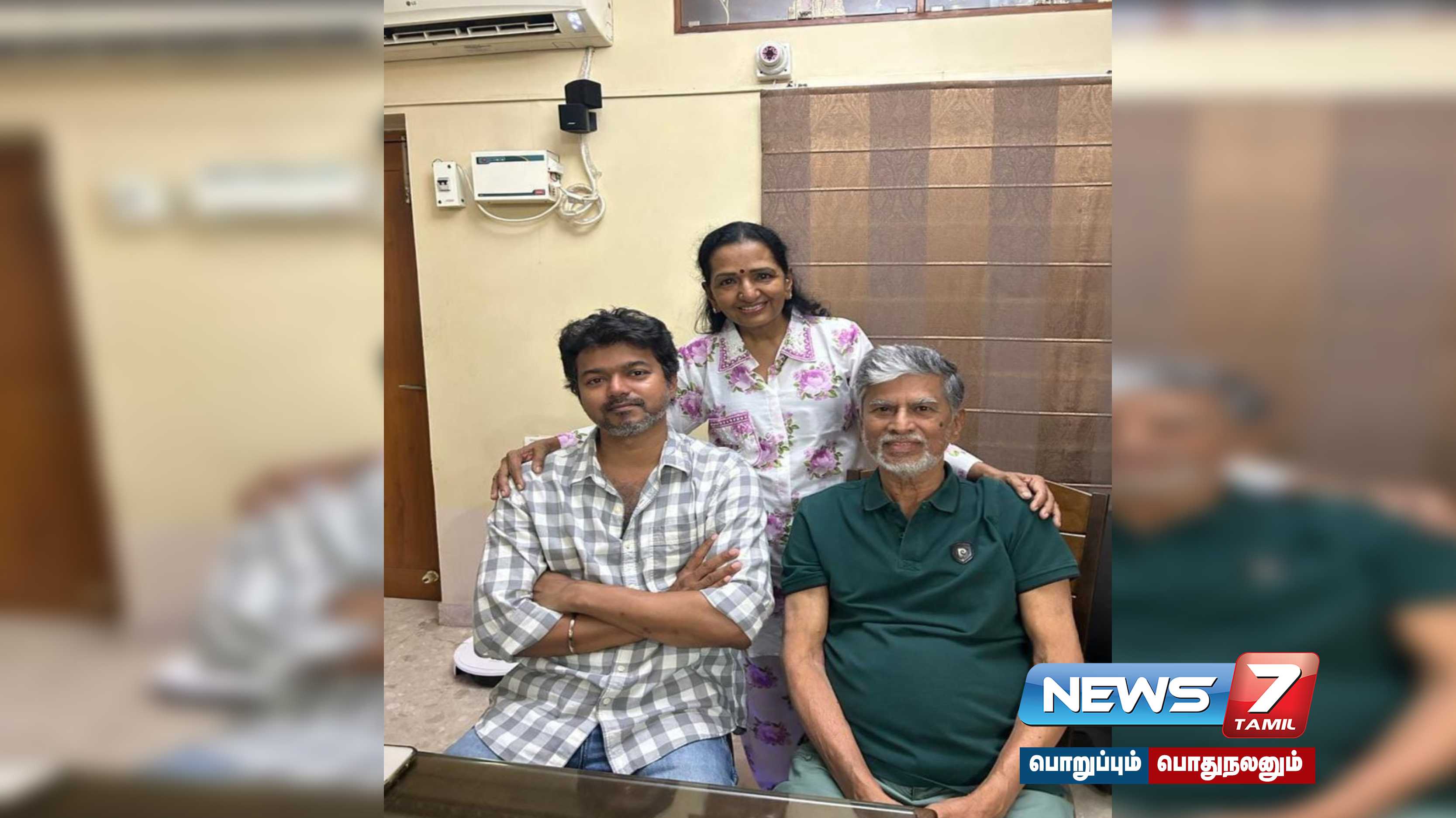 இந்நிலையில், உடல்நலக்குறைவு காரணமாக அறுவை சிகிச்சை செய்து கொண்ட தந்தையும் இயக்குநருமான எஸ்.ஏ.சந்திரசேகரை அவர் சந்தித்து நலம் விசாரித்தார். அப்போது எஸ்.ஏ.சந்திரசேகர் மற்றும் தாயர்ர் ஷோபாவுடன் அவர் புகைப்படம் எடுத்துக்கொண்டார். இந்த புகைப்படம் தற்போது வைரல் ஆகி வருகிறது.