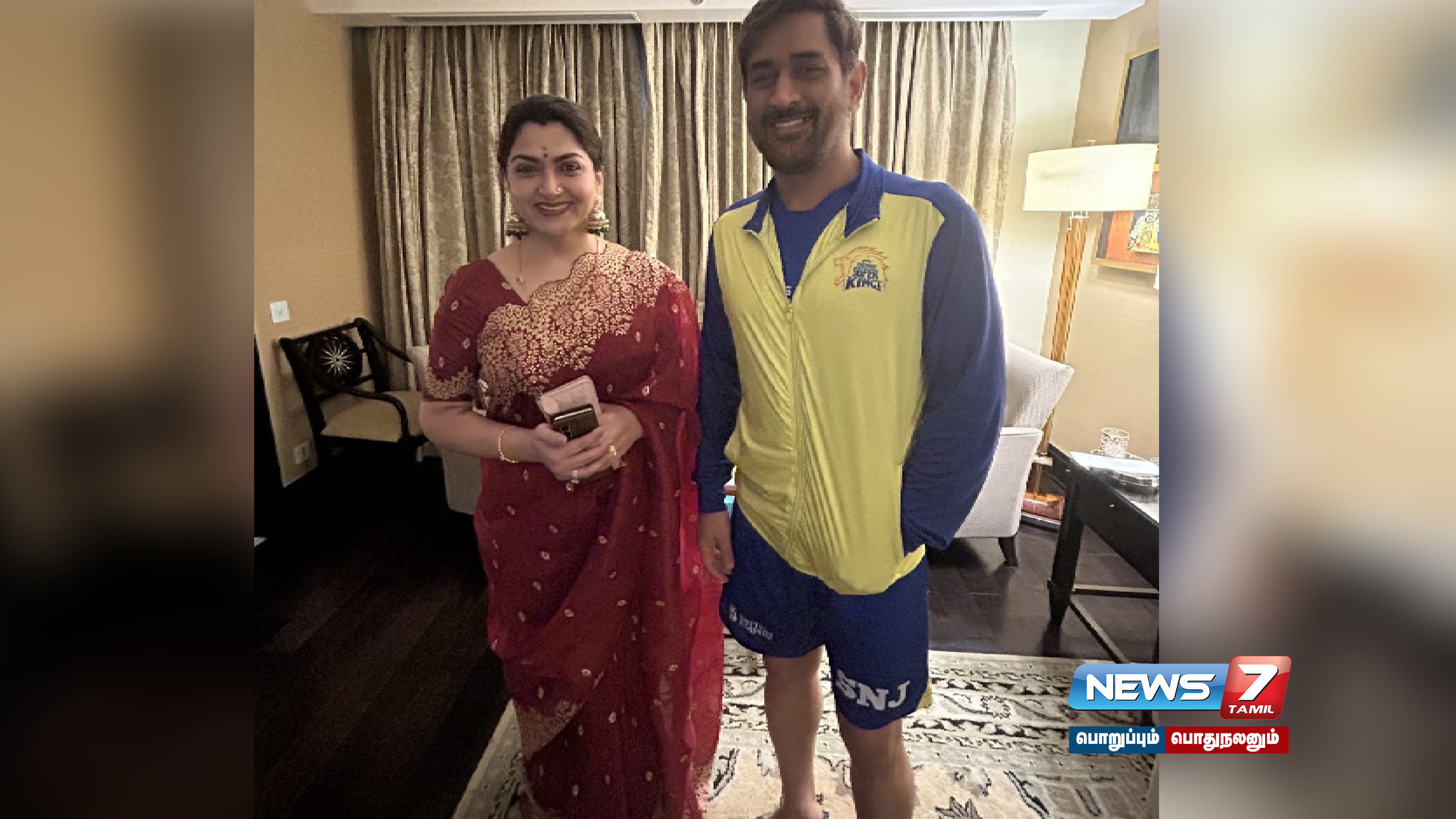 நடிகையும், பாஜக மகளிரணி உறுப்பினருமான குஷ்பு சென்னை சூப்பர் கிங்ஸ் அணியின் கேப்டனான எம்.எஸ்.தோனியை சந்தித்துள்ள புகைப்படம் தற்போது இணையத்தில் வைரலாகி வருகிறது.