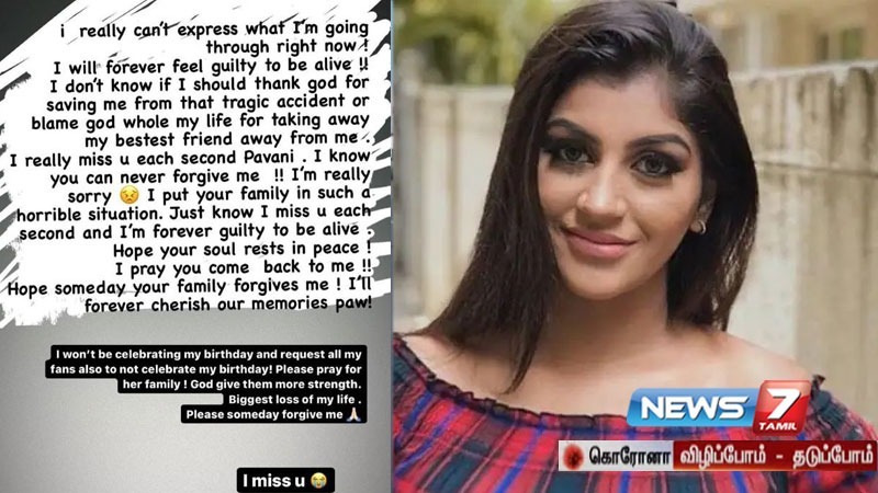 கார் விபத்தில் தோழி பவானி உயிரிழந்ததை அறிந்த பின்னர், நடிகை யாஷிகா ஆனந்த் தனது இன்ஸ்டாகிராமில் உருக்கமான பதிவு ஒன்றை வெளியிட்டுள்ளார்.