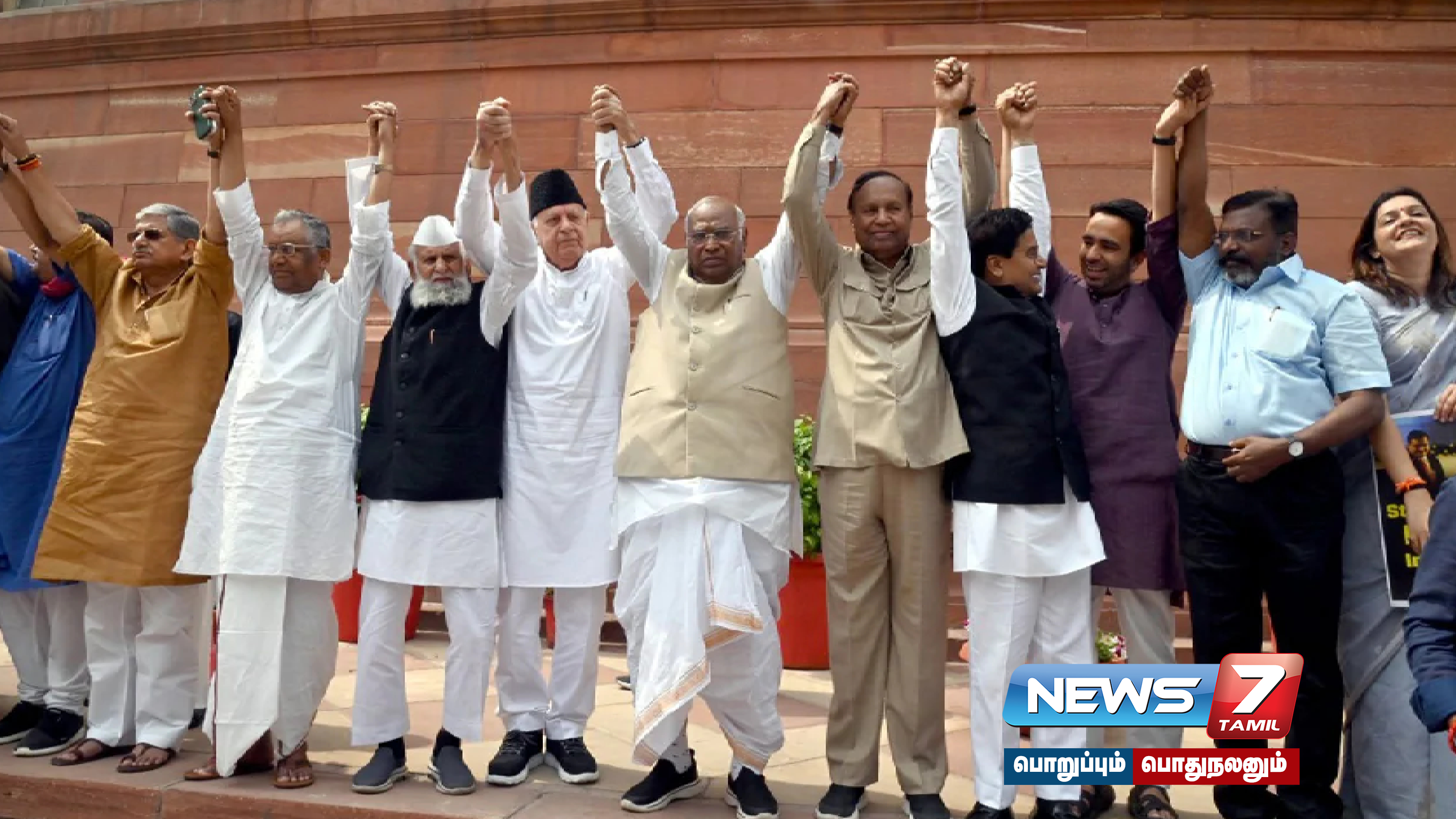அதானி விவகாரத்தில் நாடாளுமன்ற கூட்டுக் குழு விசாரணைக்கு உத்தரவிடக் கோரி, நாடாளுமன்ற வளாகத்தில் எதிர்க்கட்சி எம்.பி.க்கள் மனித சங்கிலி போராட்டத்தில் ஈடுபட்டனர்.