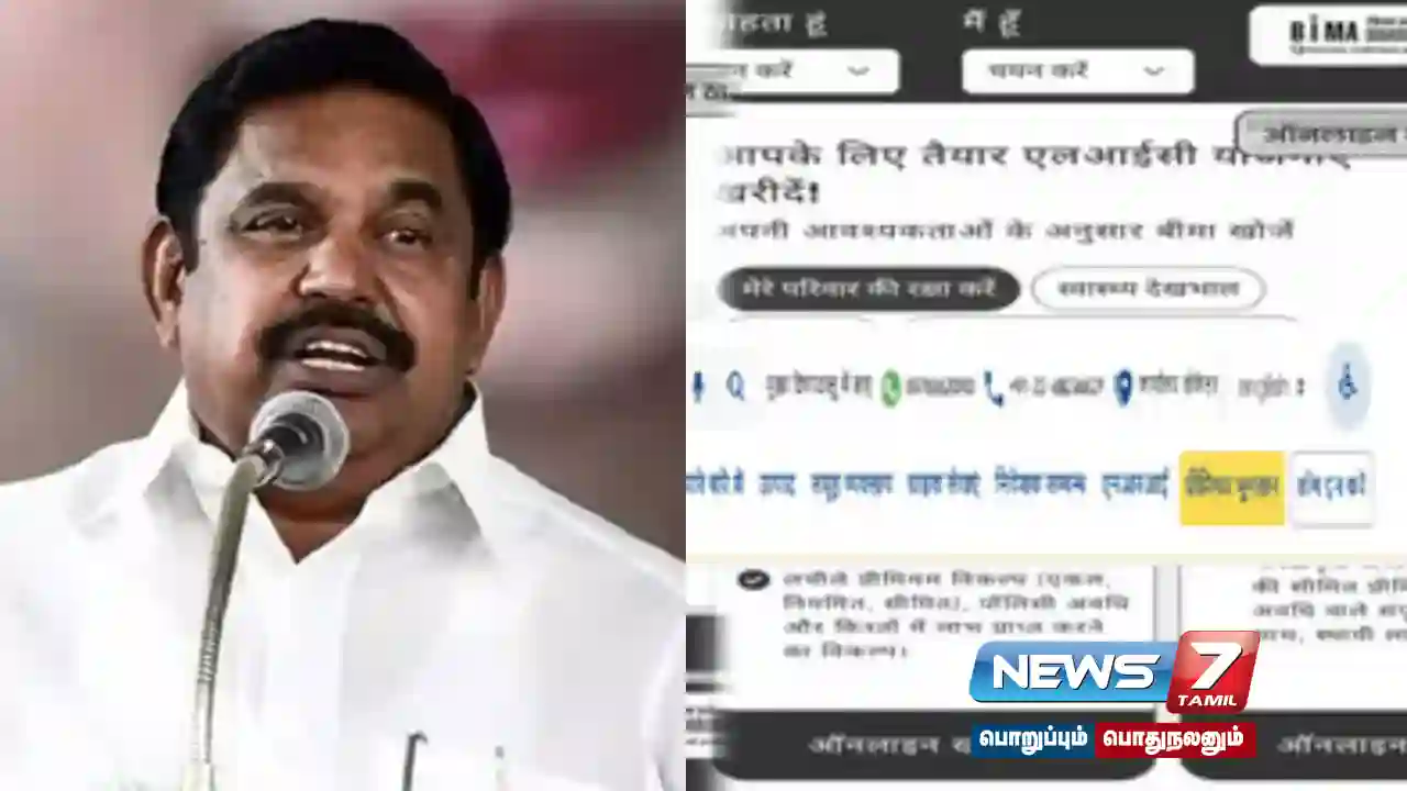 எல்ஐசி இணையதளத்தின் முகப்பு பக்கம் இந்தியில் உள்ளதற்கு எதிர்கட்சி தலைவர் எடப்பாடி பழனிசாமி கண்டனம் தெரிவித்தார்.