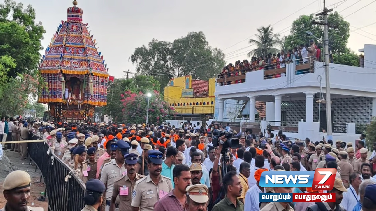 கோயிலில் இருந்து புறப்பட்ட தேர் கோயிலை சுற்றி சுமார் ஒன்றரை கிலோ மீட்டர்