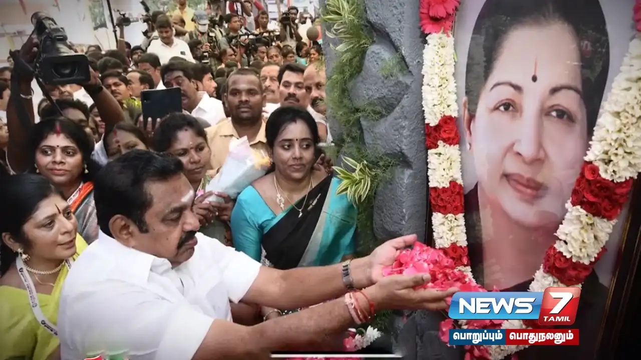 இந்த விழாவில் கலந்து கொள்ள பொதுச் செயலாளர் எடப்பாடி பழனிச்சாமி வருகை தந்தார். அவருக்கு பிரம்மாண்டமான வரவேற்பு அளிக்கப்பட்டது. பின்னர் அவர் தலைமை அலுவலகத்தில் உள்ள எம்.ஜி.ஆர் மற்றும் ஜெயலலிதா சிலைகளுக்கு மாலை அணிவித்து மரியாதை செலுத்தினார்.