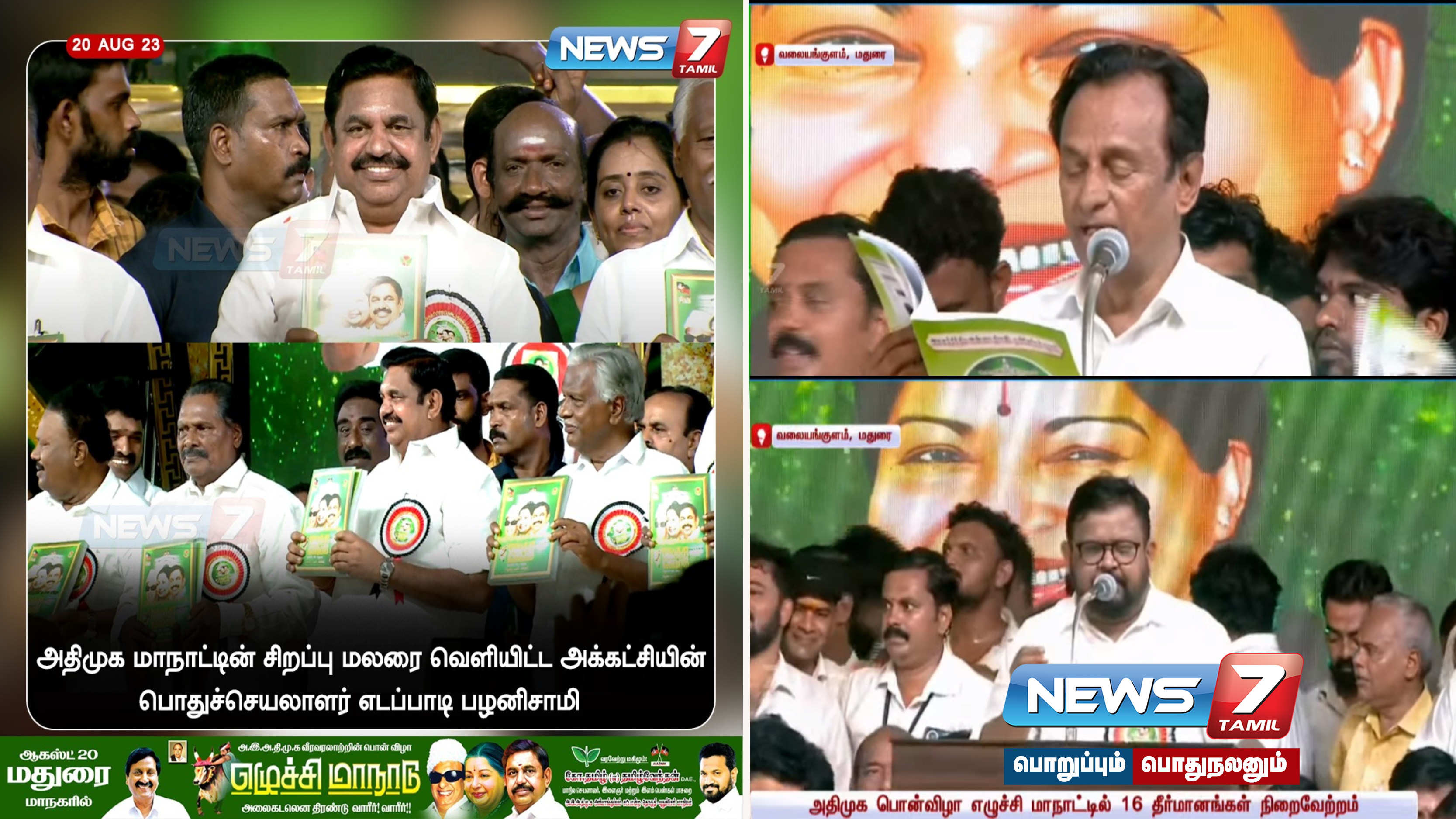 மதுரையில் நடைபெற்றுவரும் அதிமுக பொன்விழா எழுச்சி மாநாட்டில், தீர்மானங்கள் நிறைவேற்றப்பட்டு, சிறப்பு மலரை அக்கட்சியின் பொதுச்செயலாளர் எடப்பாடி பழனிச்சாமி வெளியிட்டார்.