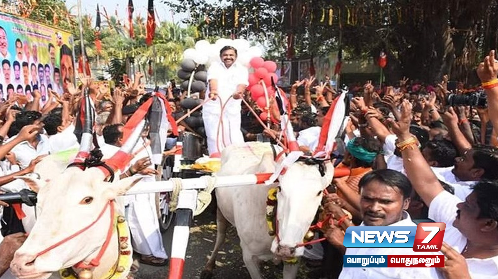 சேலம் மாவட்டம் ஓமலூரை அடுத்த திண்டமங்கலம் பகுதியில் அதிமுக சார்பில் நடைபெற்ற பொங்கல் விழாவில் அக்கட்சியின் பொதுச்செயலாளர் எடப்பாடி பழனிசாமி பங்கேற்றார். முன்னதாக, தொண்டர்கள் சூழ எடப்பாடி பழனிசாமி இரட்டை மாட்டு வண்டியை ஓட்டி விழா மைதானத்திற்கு வந்தார் . தொடர்ந்து 108 பானைகளில் பெண்கள் பொங்கல் வைக்க, அவர்களுடன் தானும் பொங்கல் வைத்து வழிப்பட்டார்.