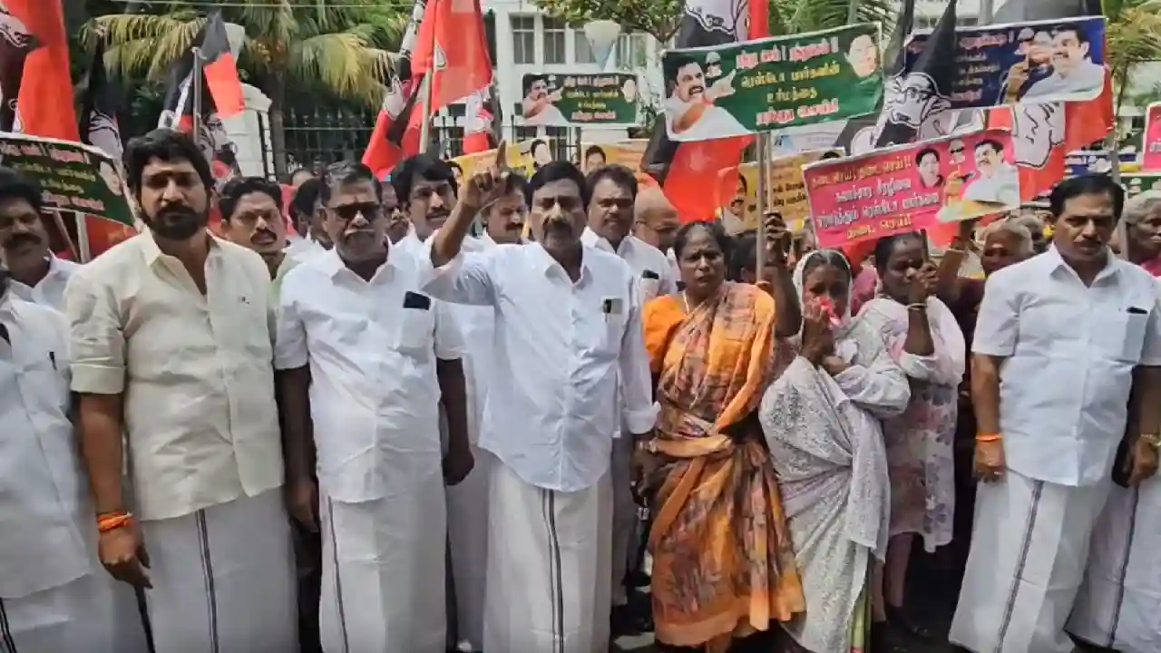 அப்போது அதிமுகவினருக்கு மாவட்ட ஆட்சியர் அலுவலகத்திற்கு உள்ளே செல்ல அனுமதி மறுக்கப்பட்டதால் பாதுகாப்புக்காக போடப்பட்ட பேரிகார்டுகளை அதிமுகவினர் தள்ளியதால் அங்கு பரபரப்பு ஏற்பட்டது.