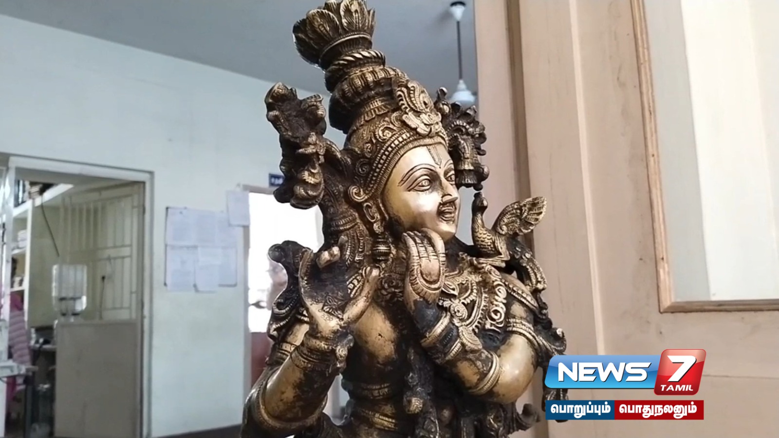 இந்த நிலையில், அங்கிருந்து சிலைகள் திருடப்பட்டதாக காப்பக நிர்வாகி கடந்த மாதம் மாவட்ட ஆட்சியர் அலுவலகத்தில் புகார் அளித்திருந்தார். தற்போது திருடப்பட்ட சிலை கல்லூரி சாலையில் உள்ள சாக்கடையில் இருந்து மீட்கப்பட்டது. இதன் பின்னர் இந்த சிலை காப்பகத்திலிருந்து திருடப்பட்ட கிருஷ்ணர் சிலை என்பது உறுதி செய்யப்பட்டது.