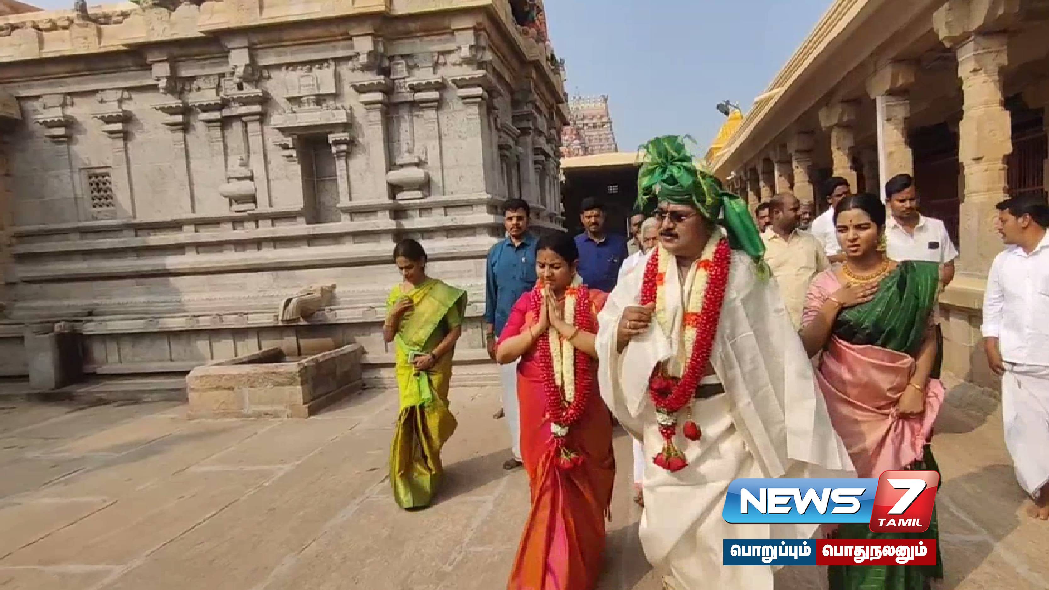 இதனை தொடர்ந்து கோபுர கலசங்களில் வைக்கப்பட்டிருந்த புனித நீர் டிடிவி தினகரன் தம்பதியினருக்கு தெளிக்கப்பட்டது. பின்னர் டிடிவி தினகரன் தம்பதி இருவரும் மாலை மாற்றிக் கொண்டு அமிர்தகடேஸ்வரர், கால சம்ஹார மூர்த்தி, அபிராமி அம்மன் ஆலயங்களுக்கு சென்று வழிபாடு செய்தனர். இந்த நிகழ்வில் டிடிவி தினகரன் மகள் ஜெயஹாரணி உள்ளிட்டோர் கலந்து கொண்டார்.